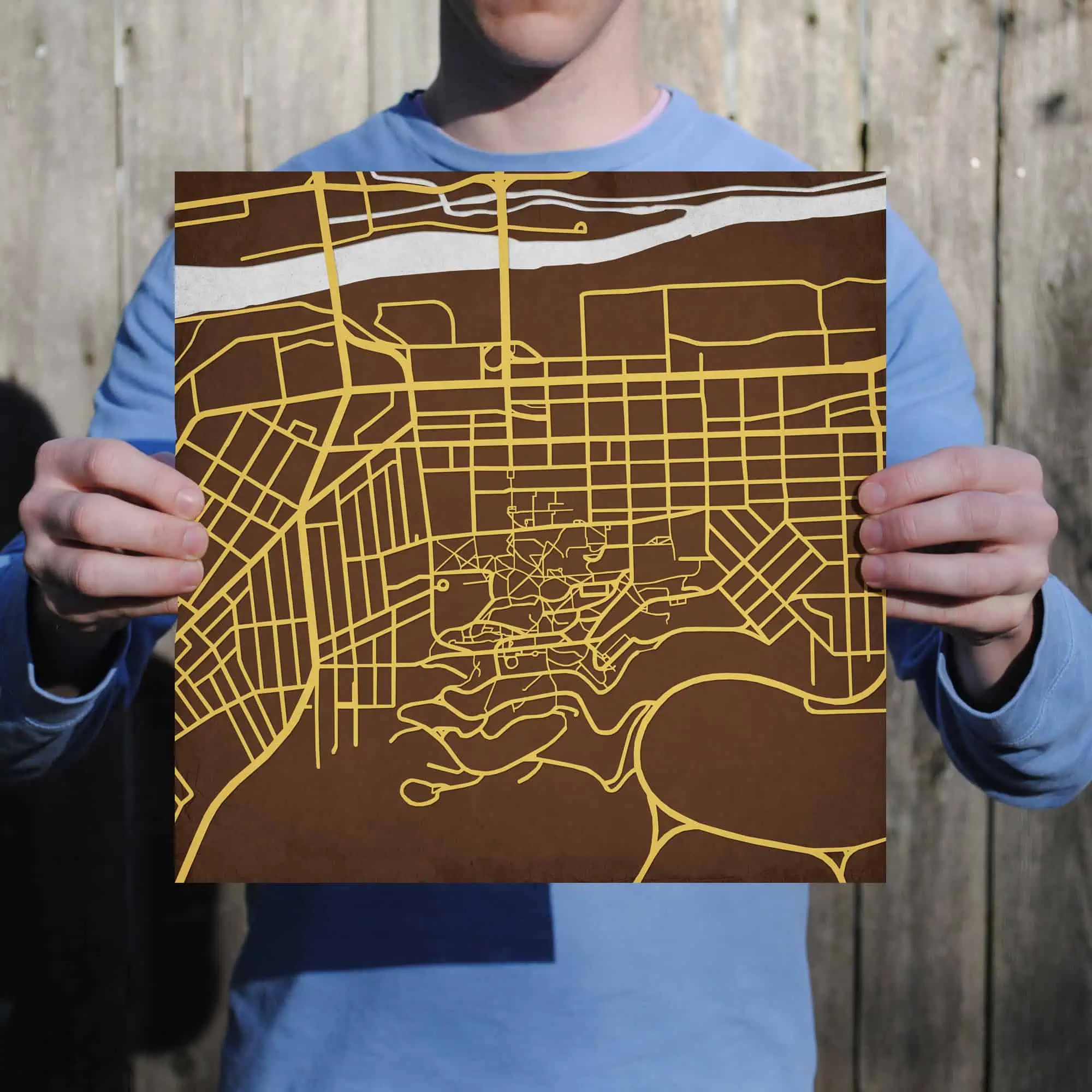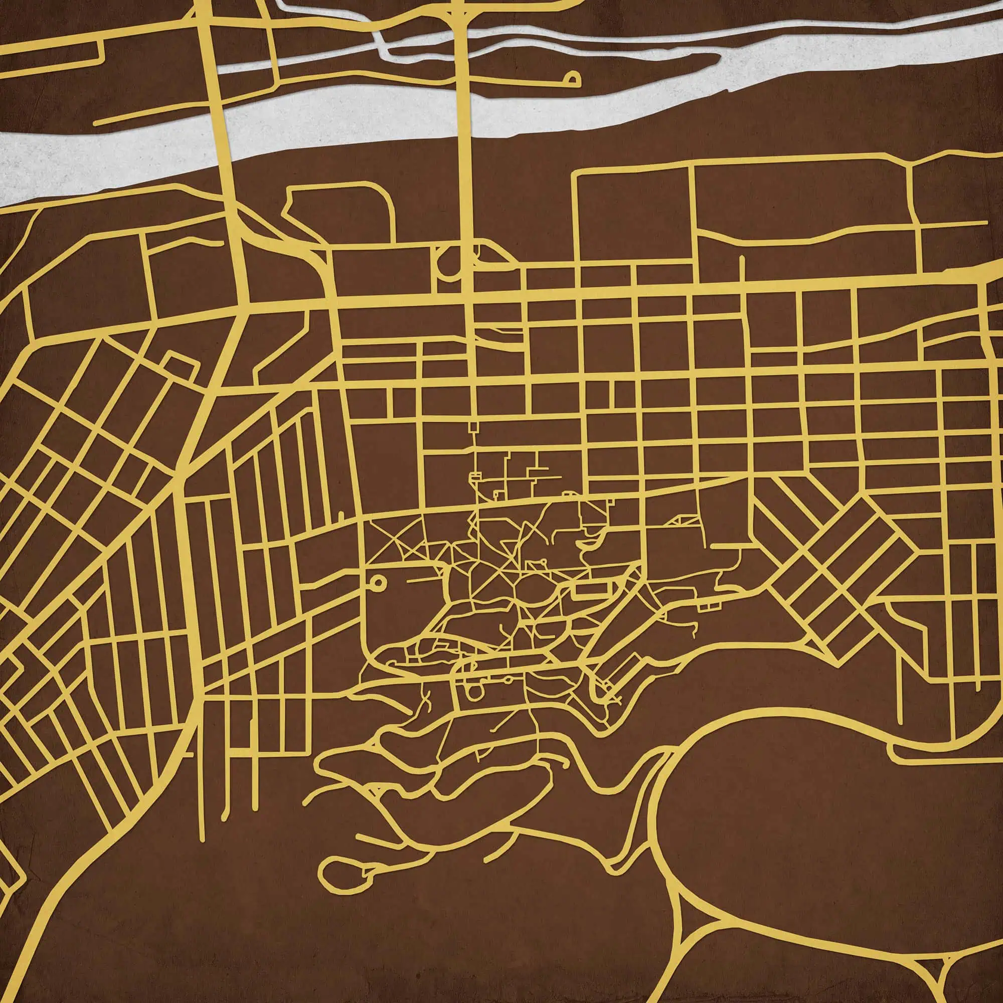 Colorful city map wall art featuring prominent street layouts and urban design, perfect for home or office decor, highlighting city navigation and geographic features.