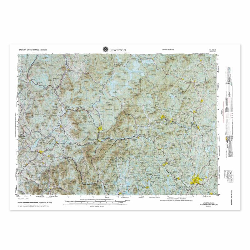 3D raised relief map of Lewiston, ME with unframed dimensions of 28.875” x 21” This map is printed on 2mm thick high-grade rigid vinyl, then one of our technical artists heat-treats and vacuum-forms each individual print over our custom Lewiston, ME mold. Showcase these mountainous areas with a one-of-a-kind and fun to touch 3D raised relief map. It’s wall art, it’s a sculpture, and it’s a functional map!