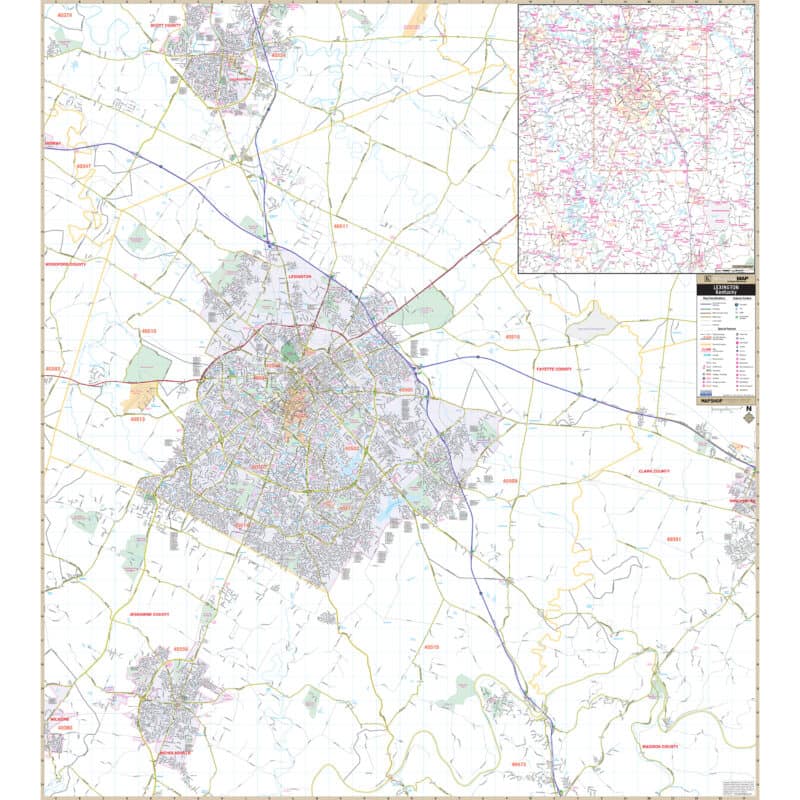 Discover the Lexington and Fayette County, KY Wall Map, meticulously crafted to provide comprehensive street-level detail for the region. This map, spanning an area of Fayette County, offers valuable geographic insights.