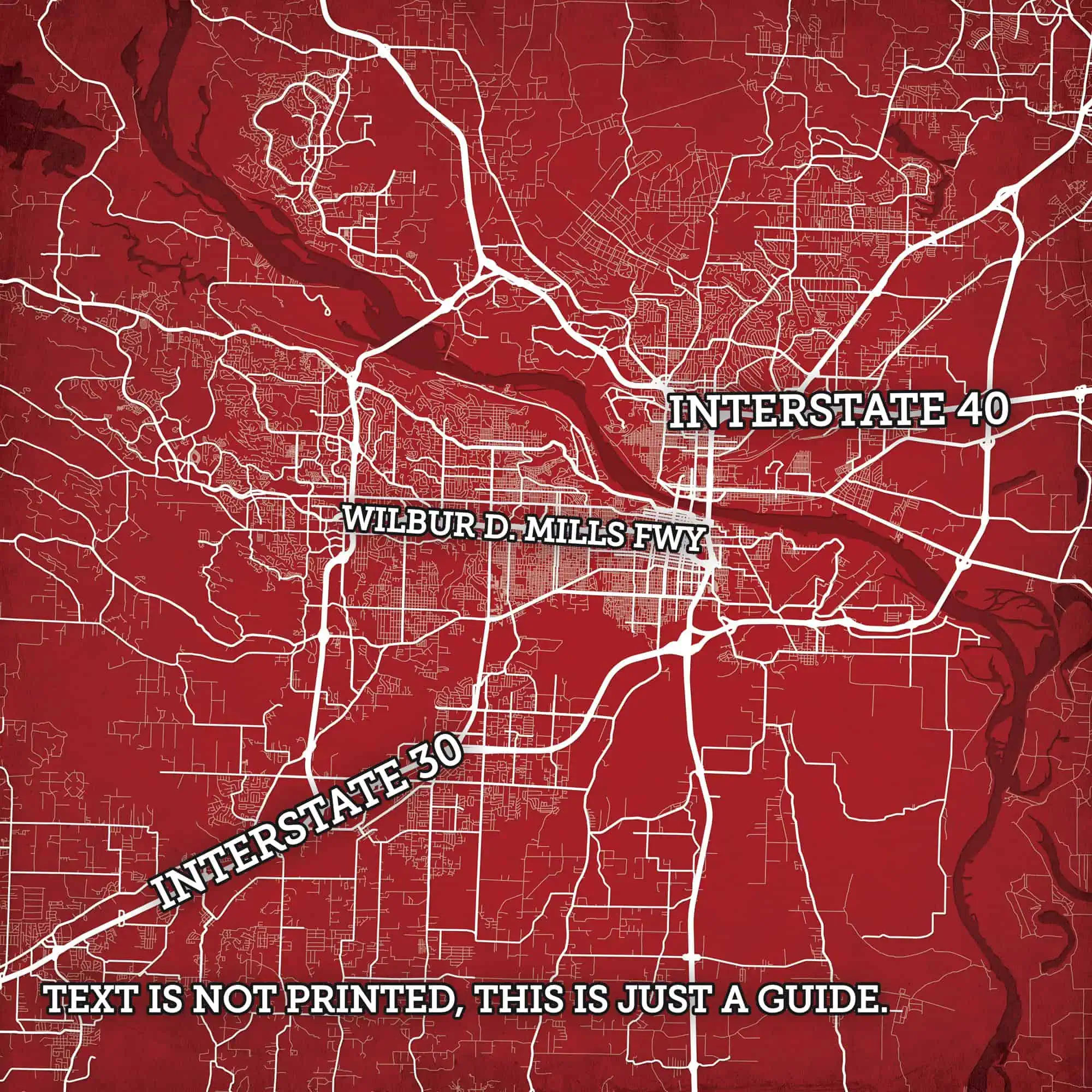 Map art print of Little Rock, AR.