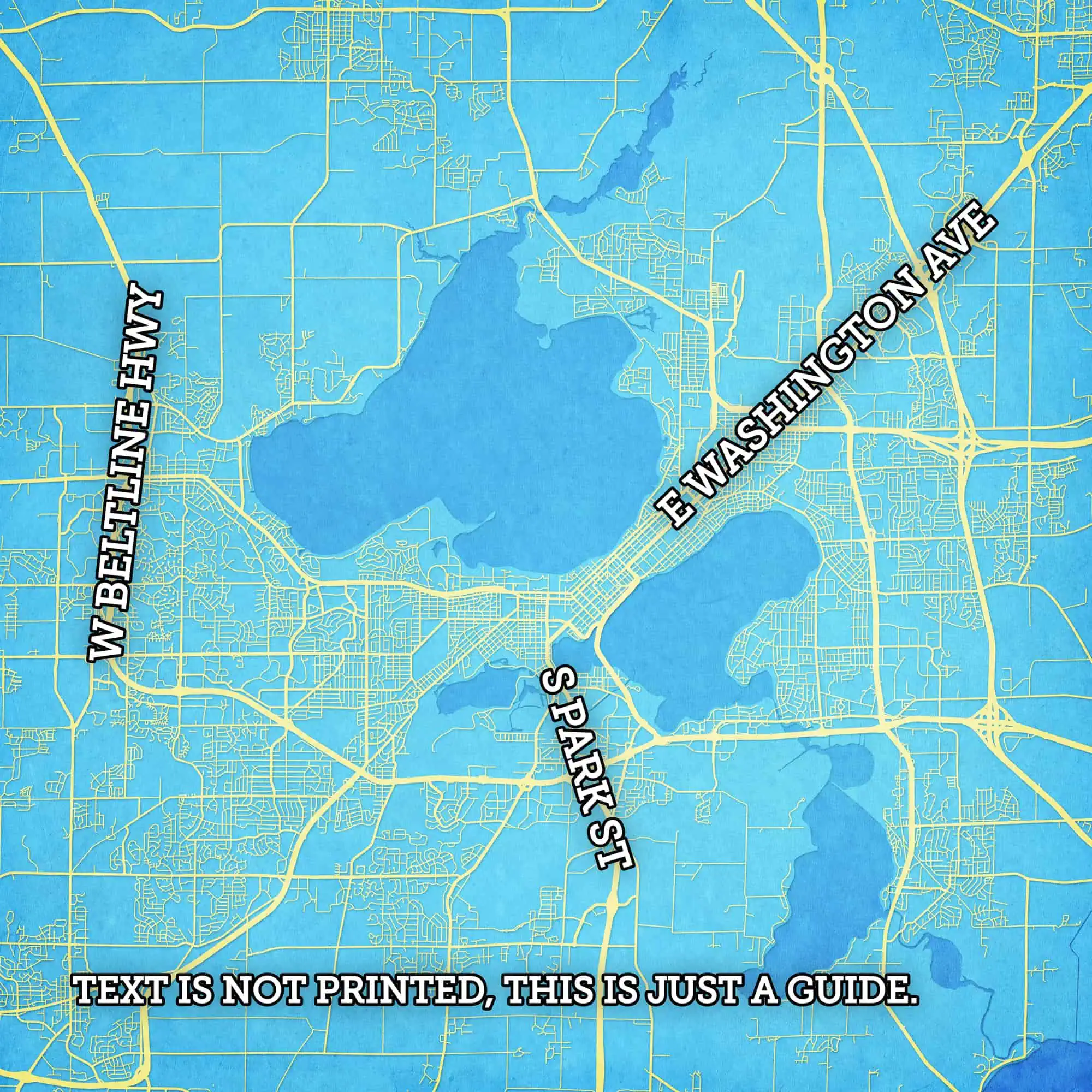 Map art print of Madison, WI.