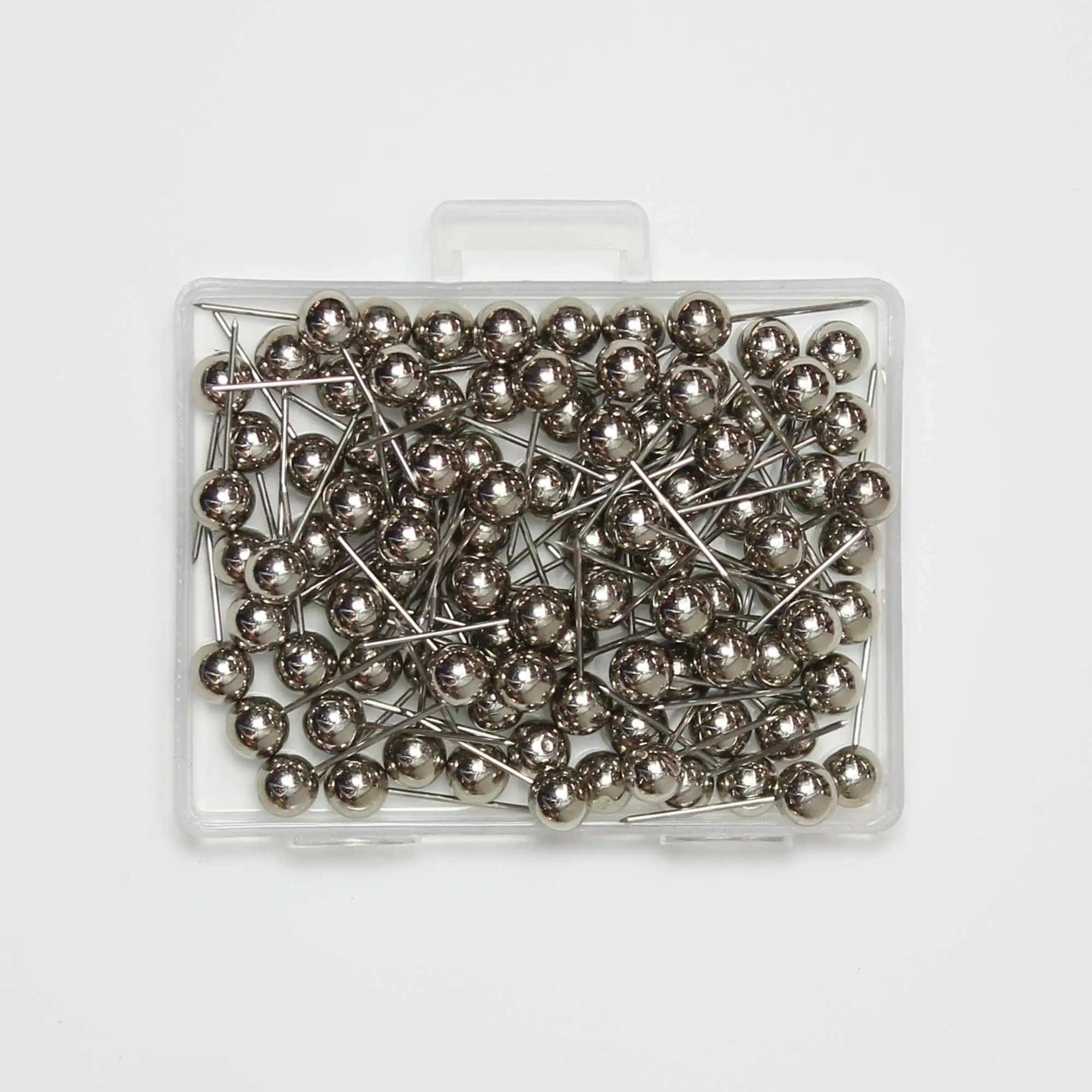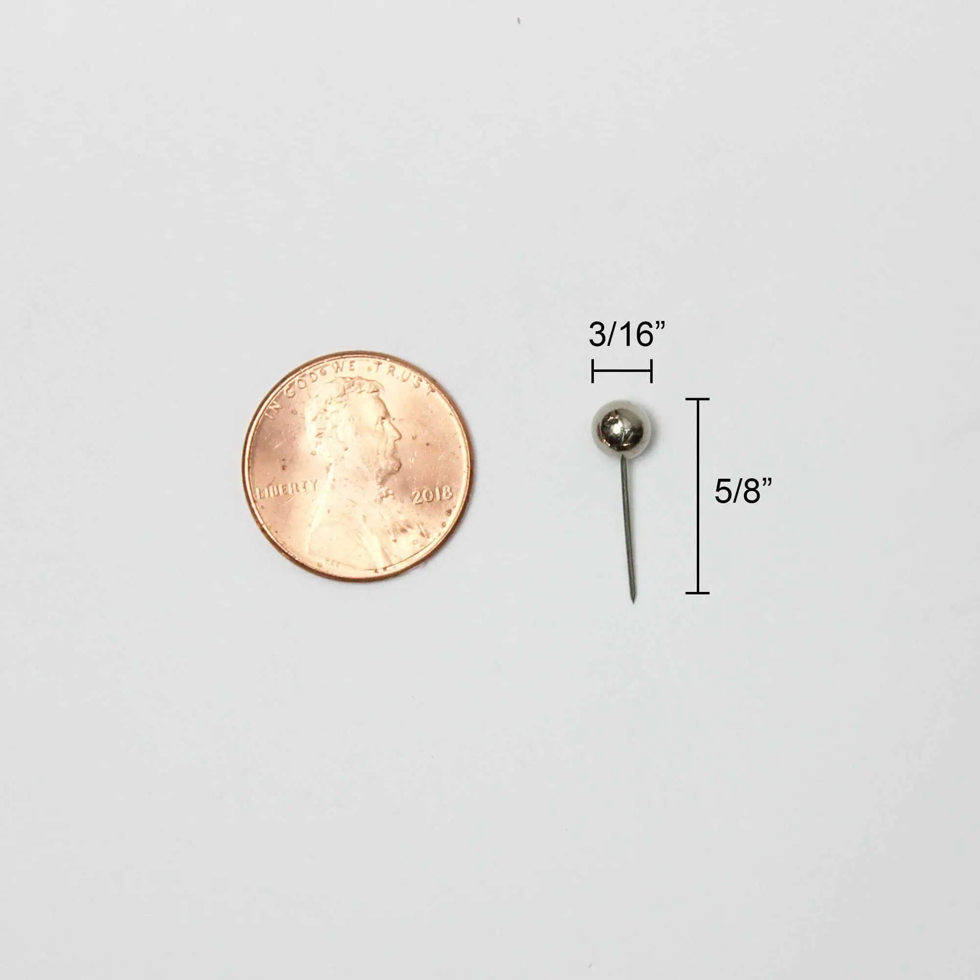 Map tacks have round heads with sharp steel points. Each round pin head has a 3/16” diameter and is made of a hard plastic. A sharp steel pin extends from the pin head, making the entire pin 5/8” long. The map pins are conveniently packaged in break-resistant clear plastic box. The box has a strong clasp to ensure your pins won’t spill and the boxes are stackable for easy storage.