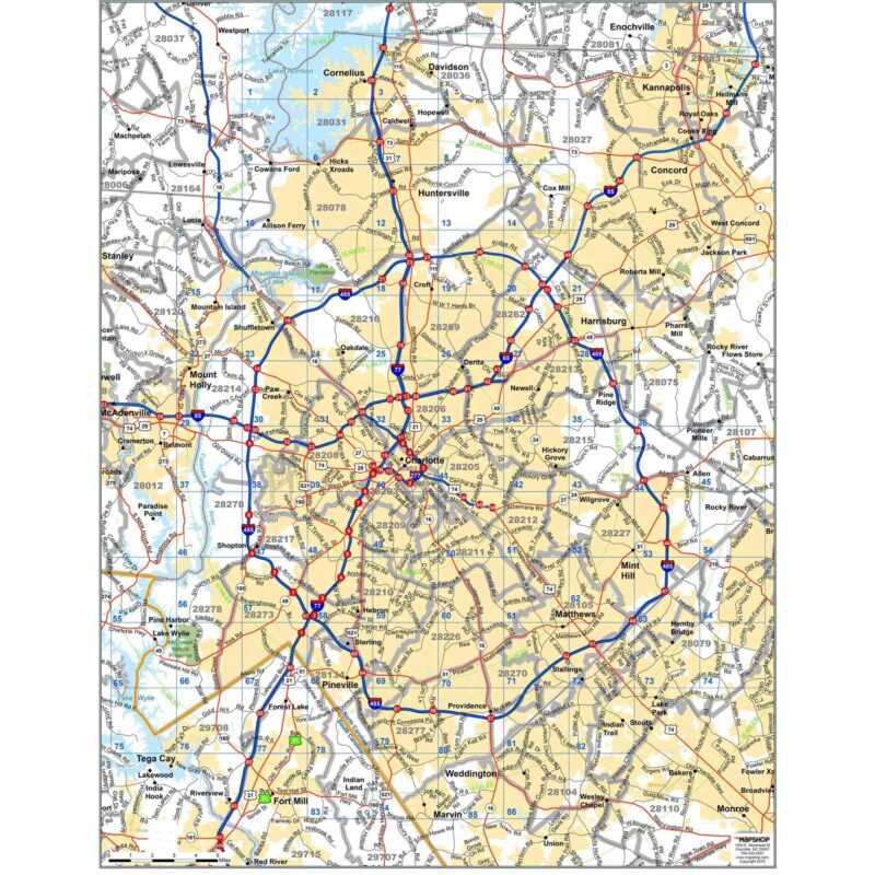 Mecklenburg County NC Wall Map