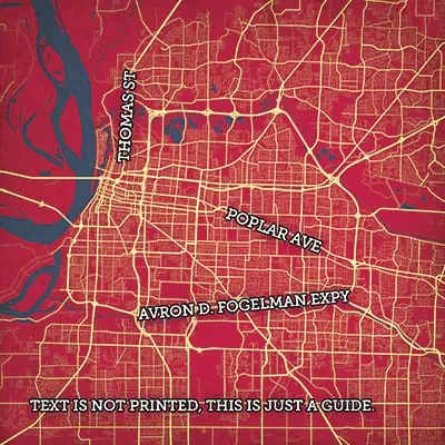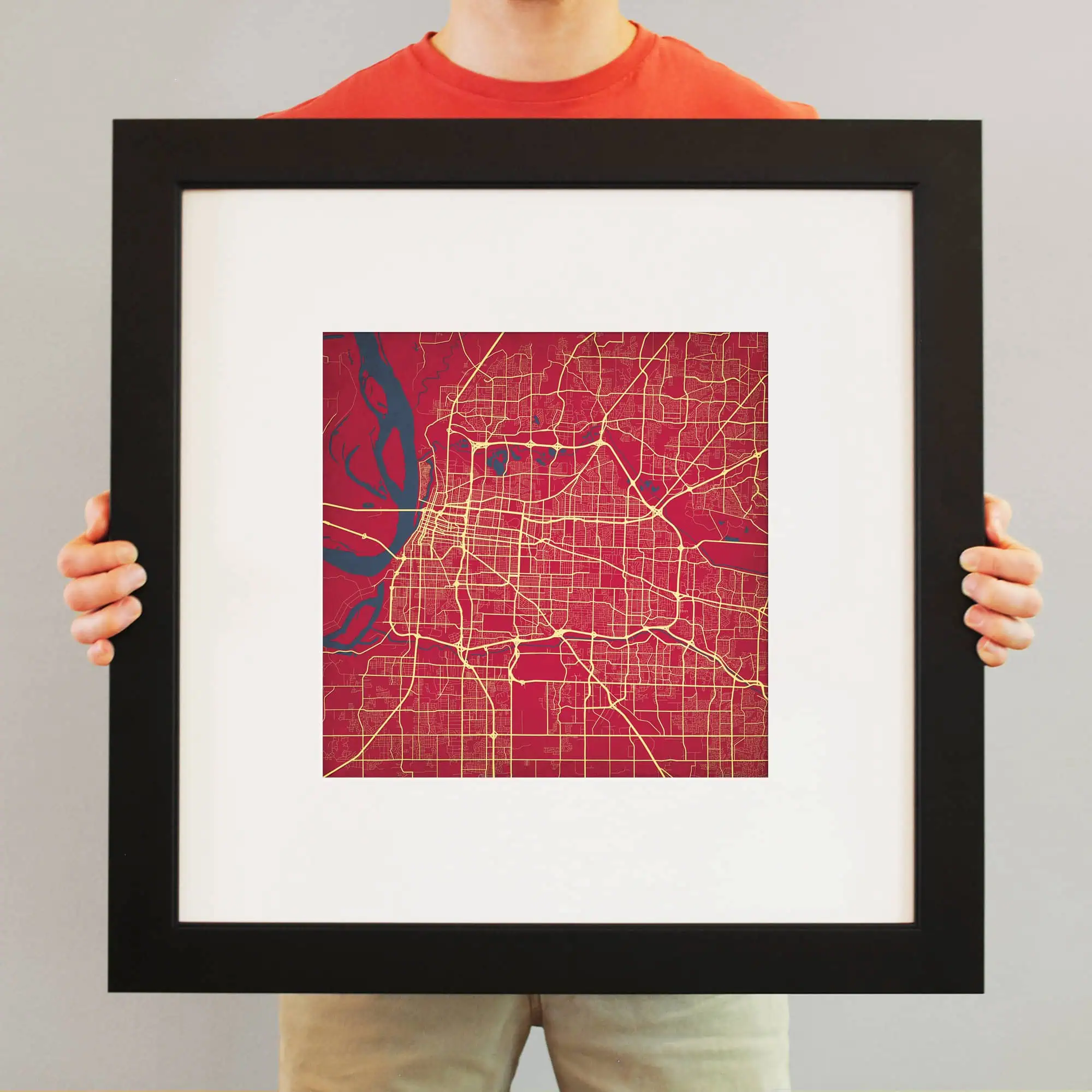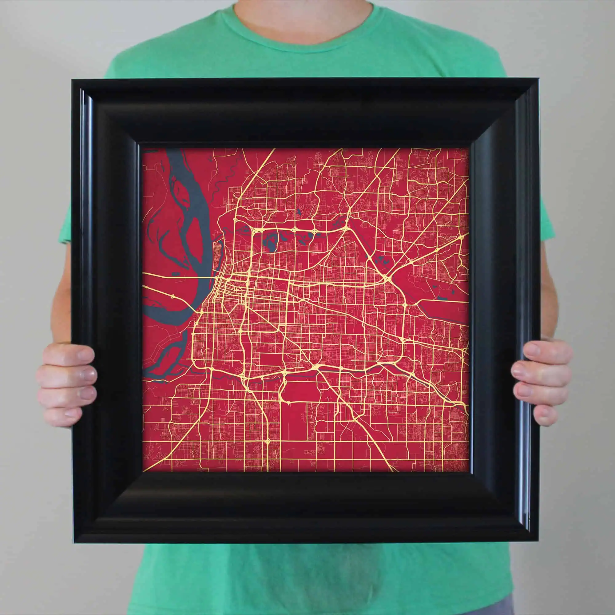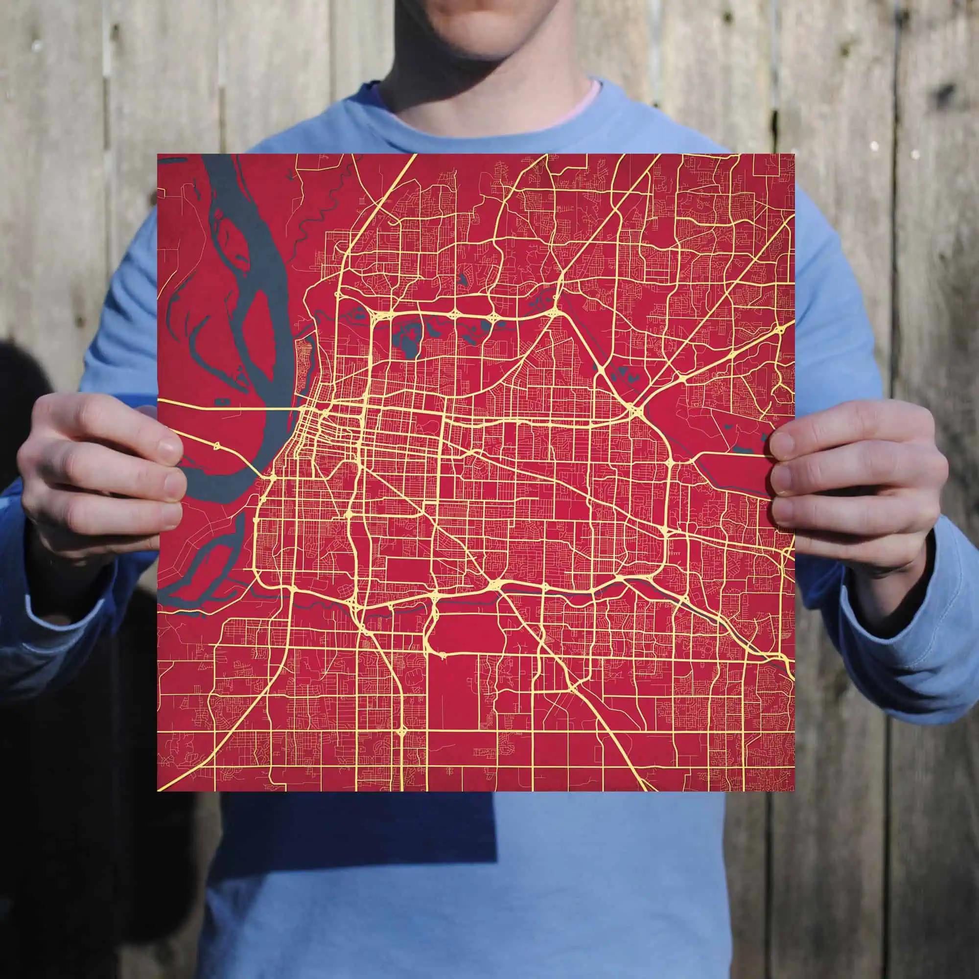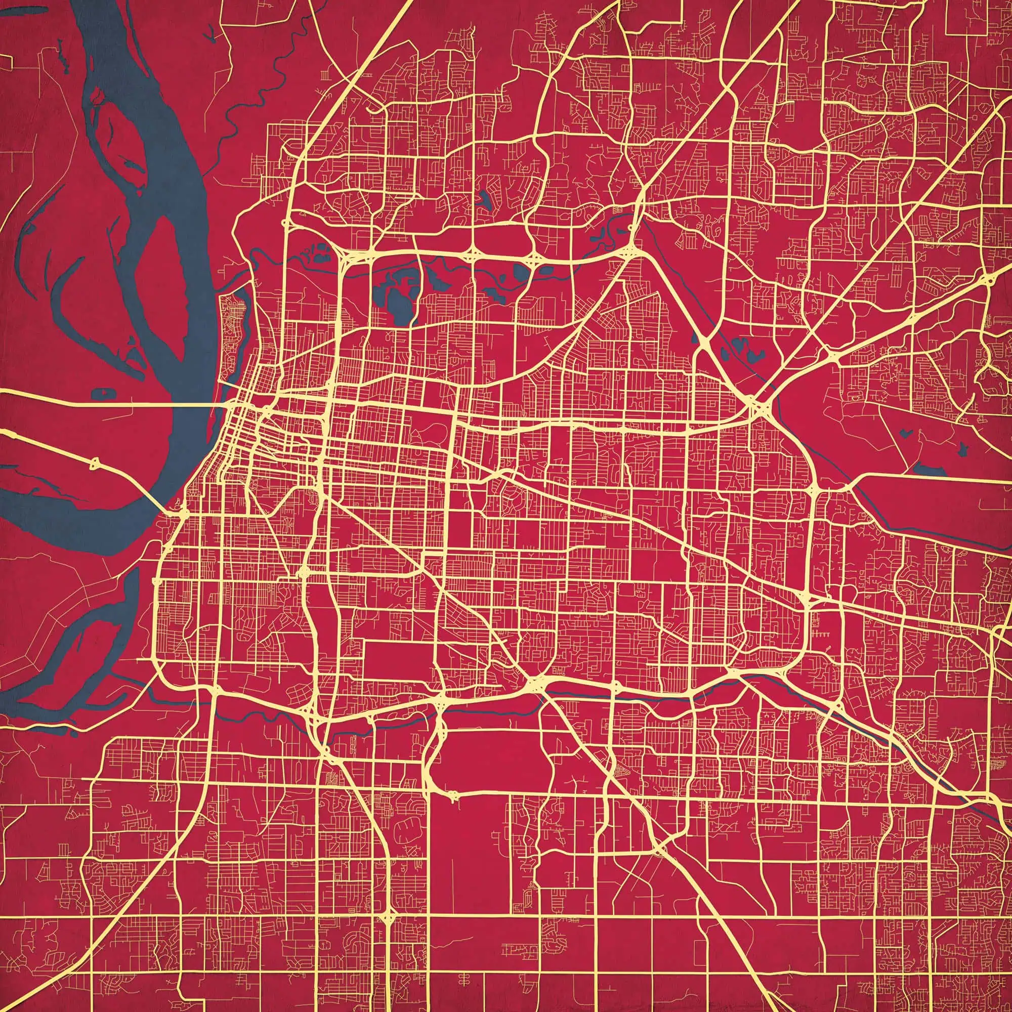 Colorful city map wall art featuring prominent street layouts and urban design, perfect for home or office decor, highlighting city navigation and geographic features.