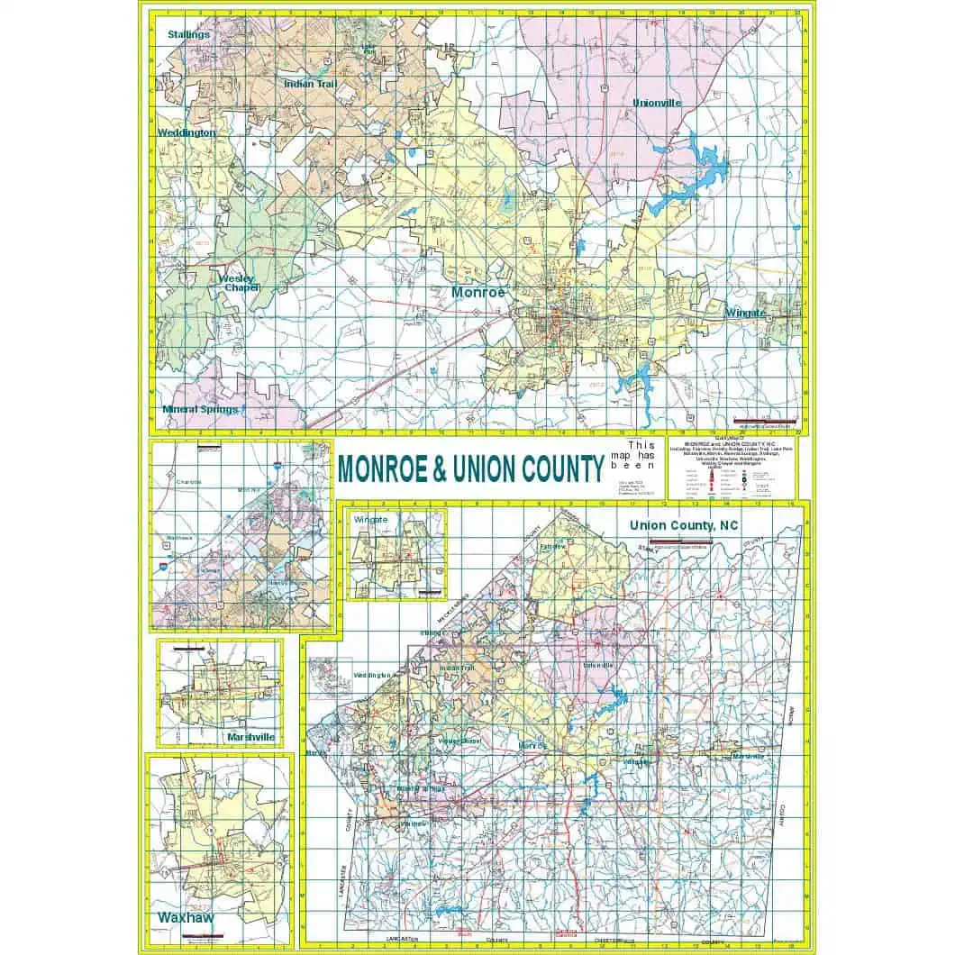 Monroe and Union County, NC Wall Map – 48×64″