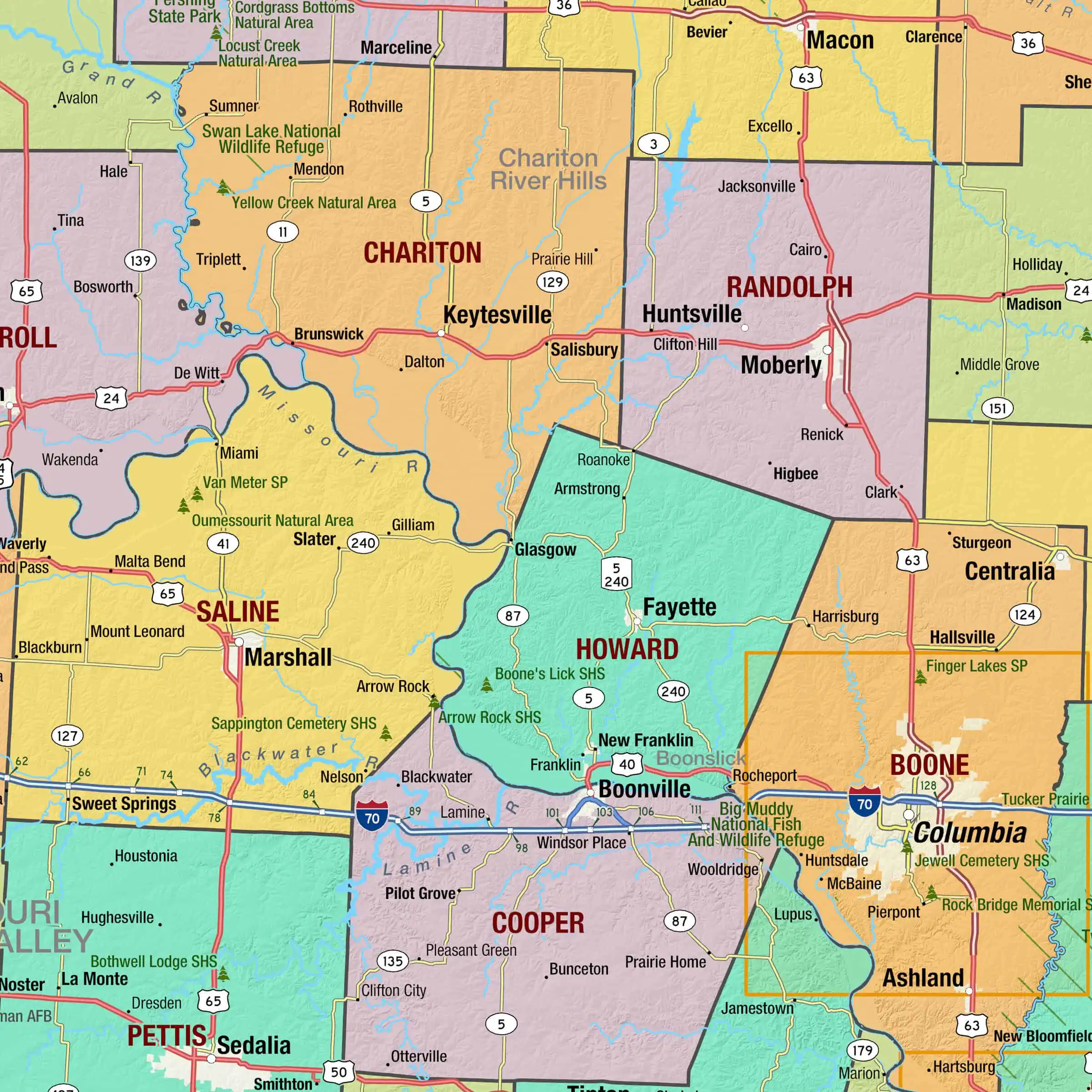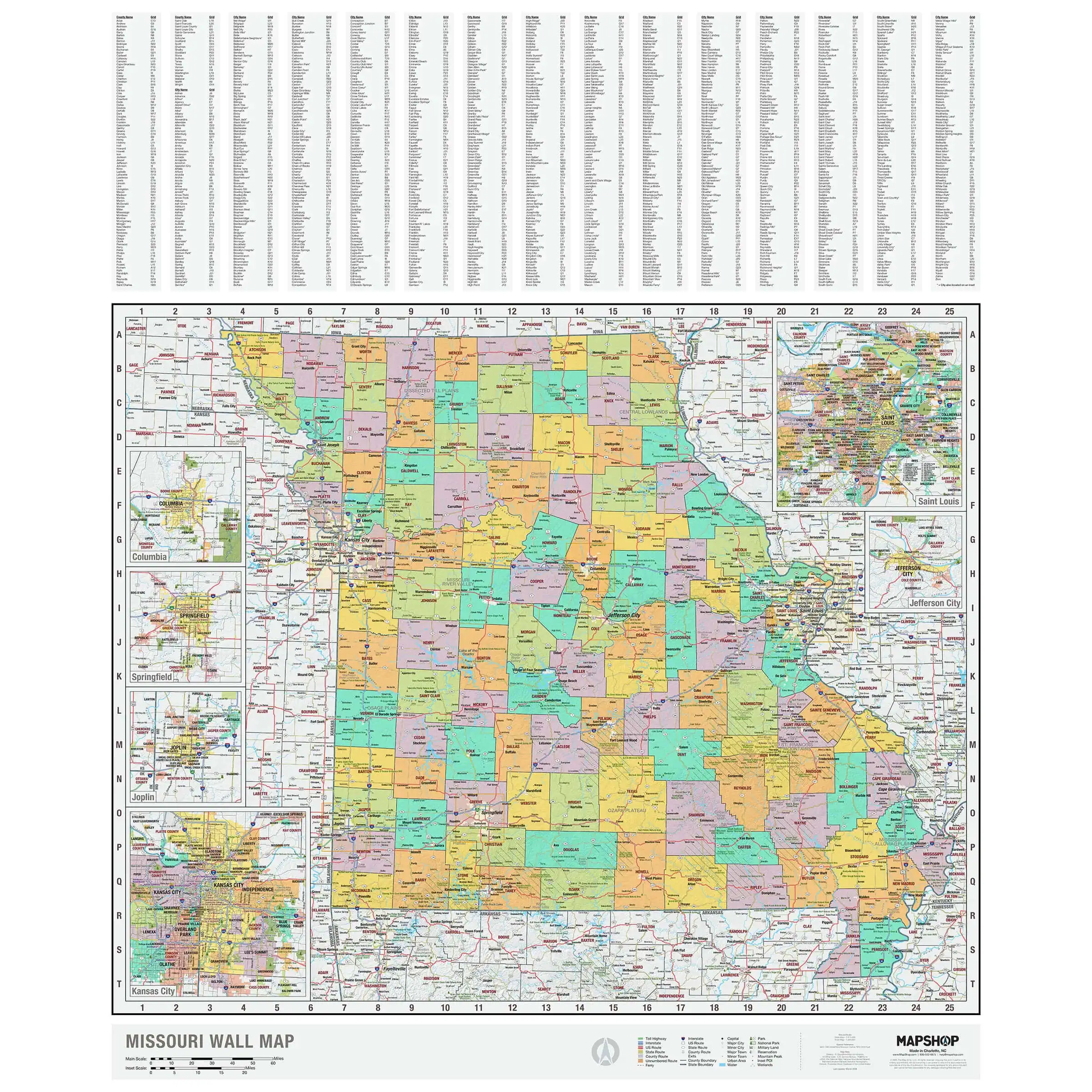 Missouri Wall Map w/Multi-Color Counties by MapShop