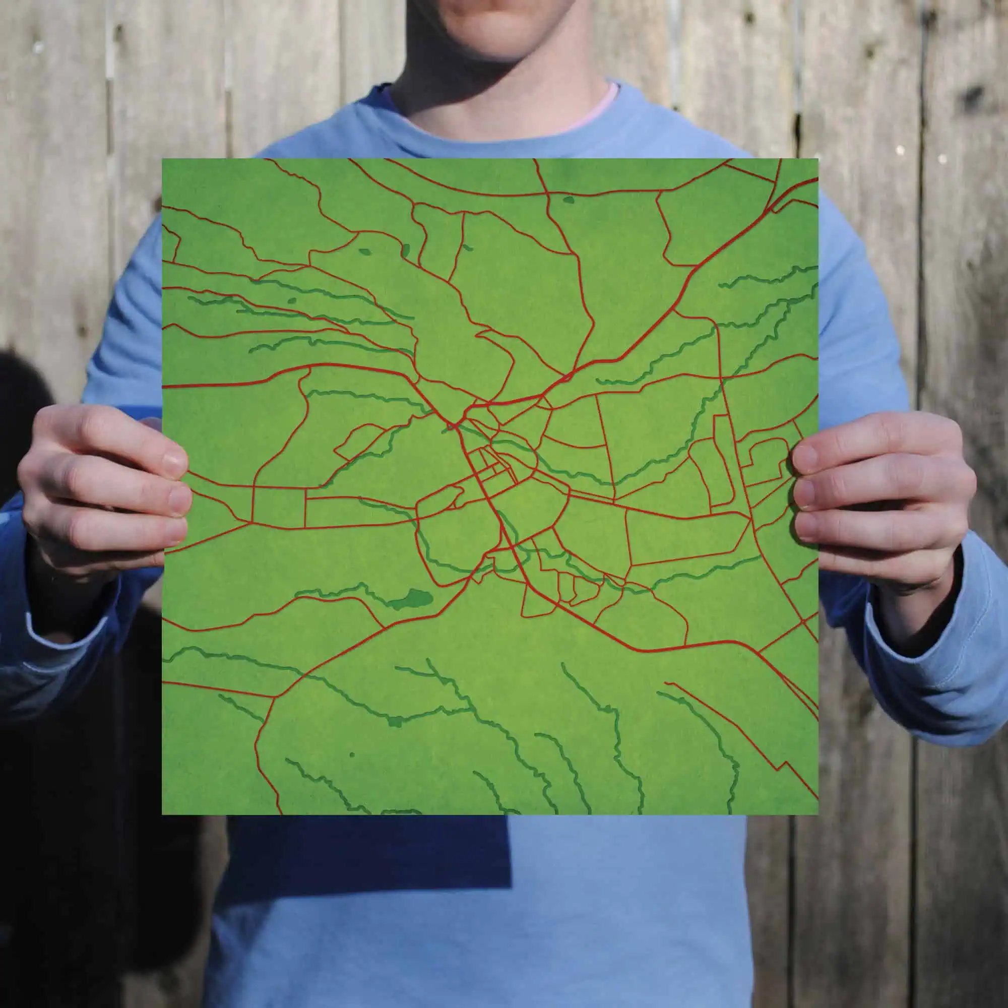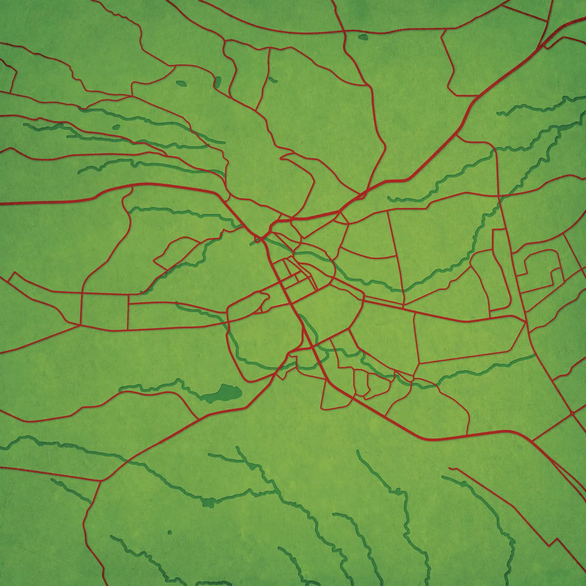 Colorful city map wall art featuring prominent street layouts and urban design, perfect for home or office decor, highlighting city navigation and geographic features.