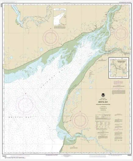Alaska NOAA charts cover the entire Alaskan coastline and offshore waters, including the Bering Sea, Chukchi Sea, Aleutian Islands, Southeast Alaska, Prince William Sound, Cook Inlet, and Glacier Bay. They feature detailed representations of harbors, bays, fjords, and navigable waterways, providing a comprehensive view of Alaska’s maritime geography.