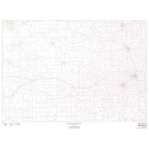 This map of Nebraska shows zip codes overlaid on a road map. Base map features include county boundaries, major road network features, and state and national parks and conservation areas.