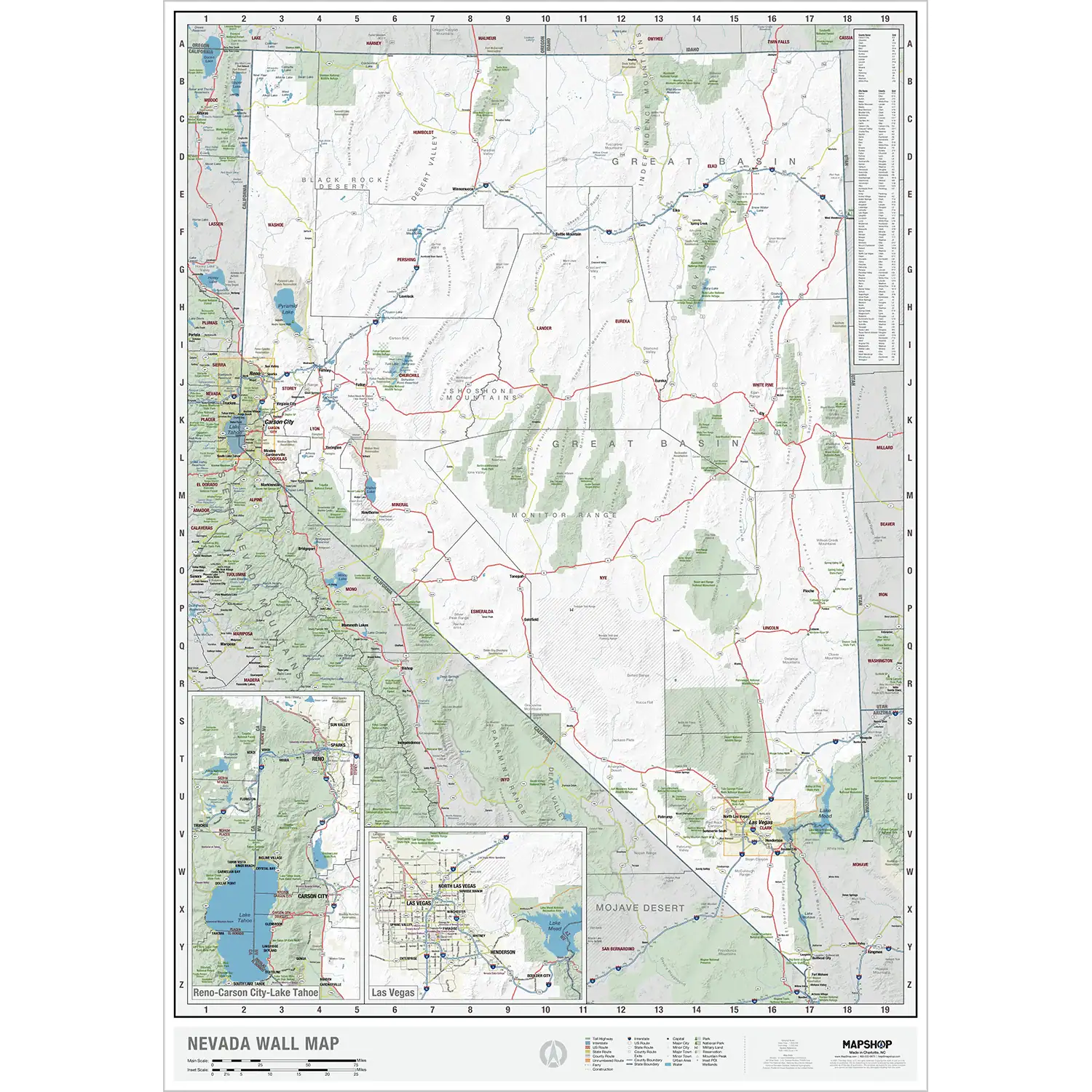 The Map Shop’s goal is simple. We want to inspire adventure, connect customers to past memories, and offer a better understanding of our country. We developed this Nevada Wall Map in-house so we’d have complete control over the cartography and design of the map. The result is a map that is as much fine art as it is a geographic reference. We even have three (3) convenient sizes you can choose the map that best fits your space. With one of the most all-inclusive Nevada maps on the market, you can’t go wrong with our wall map for any use: