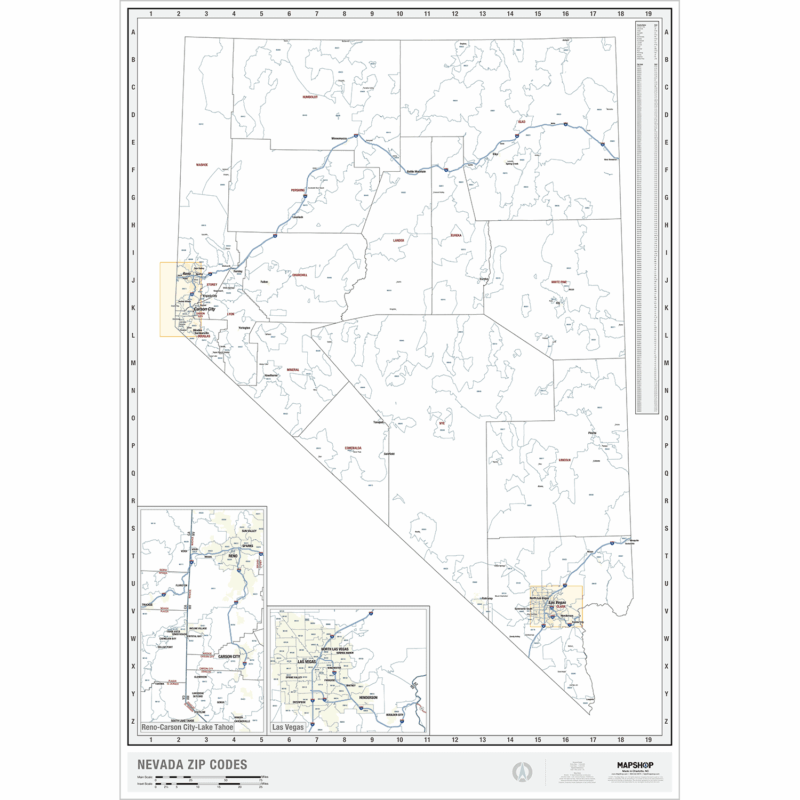 The Map Shop’s goal is simple. We want to inspire adventure, connect customers to past memories, and offer a better understanding of our country. We developed this Nevada Zip Codes Wall Map in-house so we’d have complete control over the cartography and design of the map. The result is a map that is as much fine art as it is a geographic reference. With a simple white background and a complete County & City index, you can make your plans faster and easier than ever before! Our map even includes: