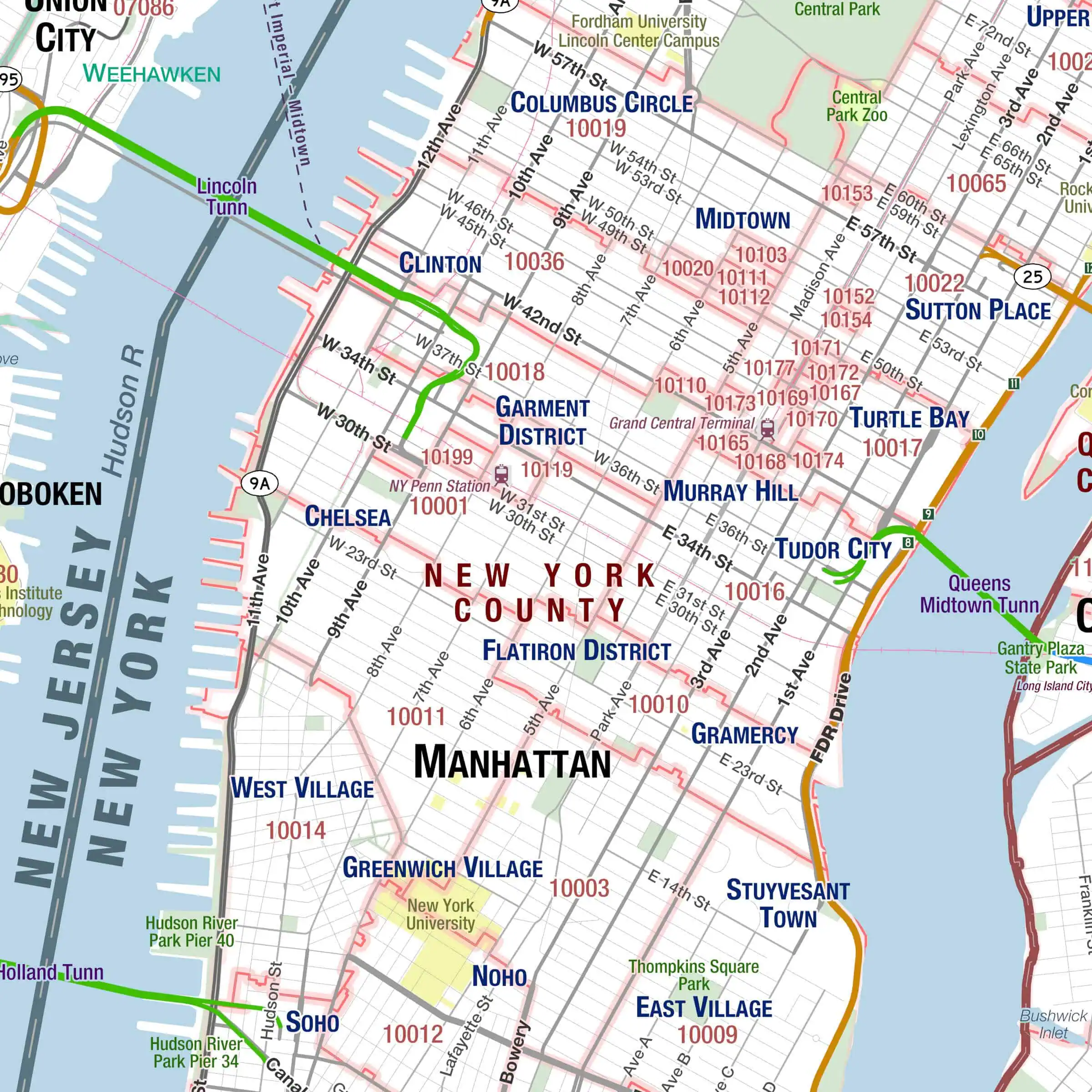 Designed and produced in-house by Map Shop’s custom cartography team, with a tuned color palette that keeps dense information readable-thin lines stay crisp, labels stay legible, and key routes stand out.
