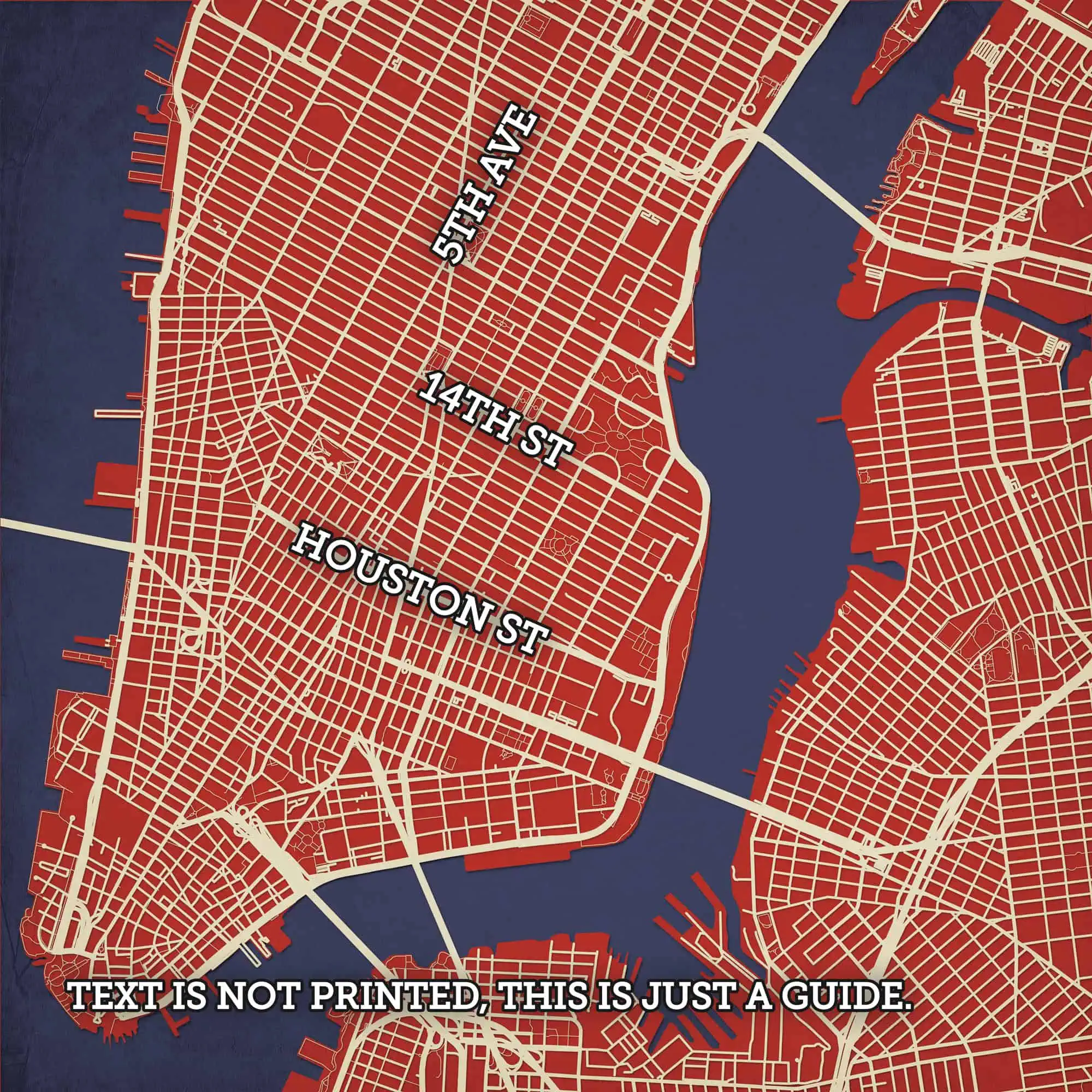 Map art print of (Lower) Manhattan, NYC, NY.