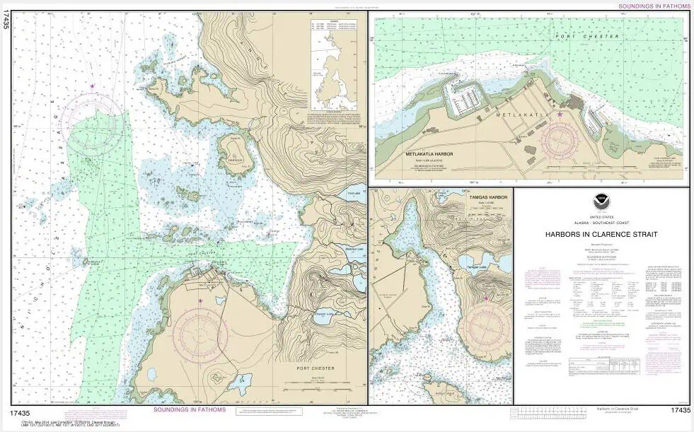 NOAA Chart – Harbors in Clarence Strait Port Chester, Annette Island; Tamgas Harbor, Annette Island; Metlakatla Harbor – 17435