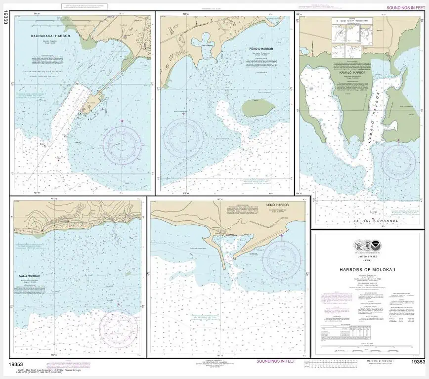 NOAA Chart – Harbors of Molokai Kaunakakai Harbor; Pkoo Harbor; Kamal Harbor; Kolo Harbor; Lono Harbor – 19353