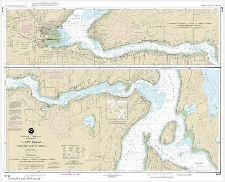 A nautical chart is one of the most important tools available to mariners. It is a specialized map that shows the configuration of the shoreline and seafloor, water depths, hazards to navigation, aids to navigation, anchorages, and other critical features. These charts have been essential for safe navigation, helping mariners plan voyages and guide vessels safely and efficiently. Federal regulations require most commercial ships in U.S. waters to carry nautical charts. Since the 1830s, the U.S. Coast Survey (now NOAA’s Office of Coast Survey) has served as the official nautical chartmaker for the United States, producing and maintaining charts of coastal waters, the Great Lakes, and U.S. territories.