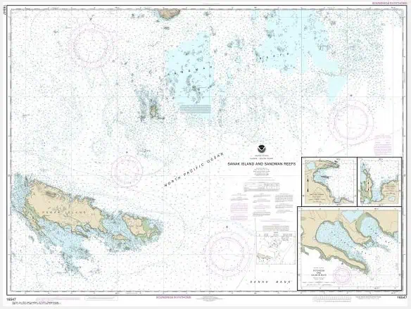 NOAA Chart – Sanak Island and Sandman Reefs; Northeast Harbor; Peterson and Salmon Bays; Sanak Harbor – 16547