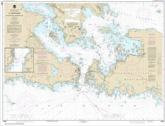 NOAA Chart – St. Mars River – Detour Passage to Munuscong Lake; Detour Passage – 14882