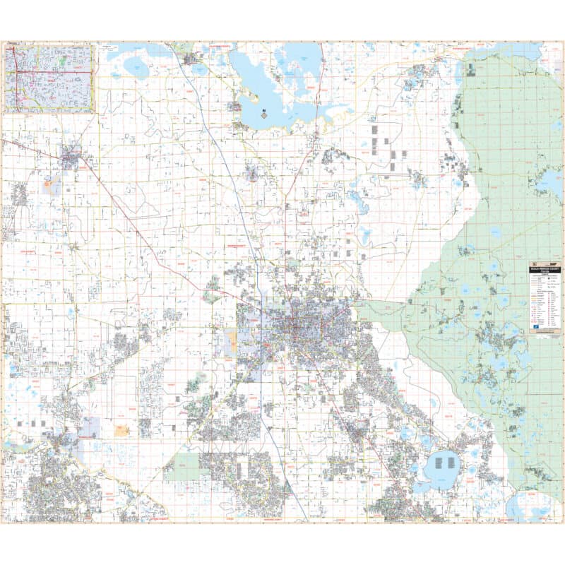 The Ocala/Marion County, Florida Wall Map by Kappa Map Group offers complete street-level detail at a scale of 1″ = 2,850 feet.