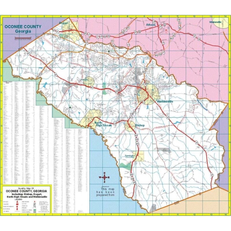Oconee County, GA Wall Map – 46×40″