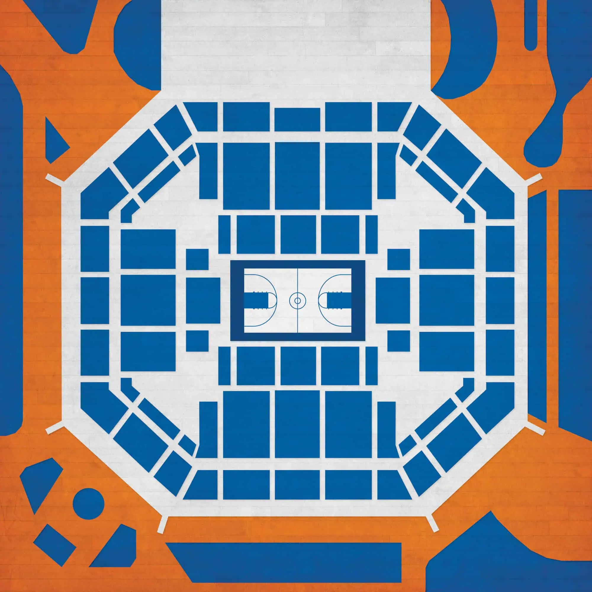 Map art print including the aerial view of O Connell Center located at the University of Florida in Gainesville, Florida.