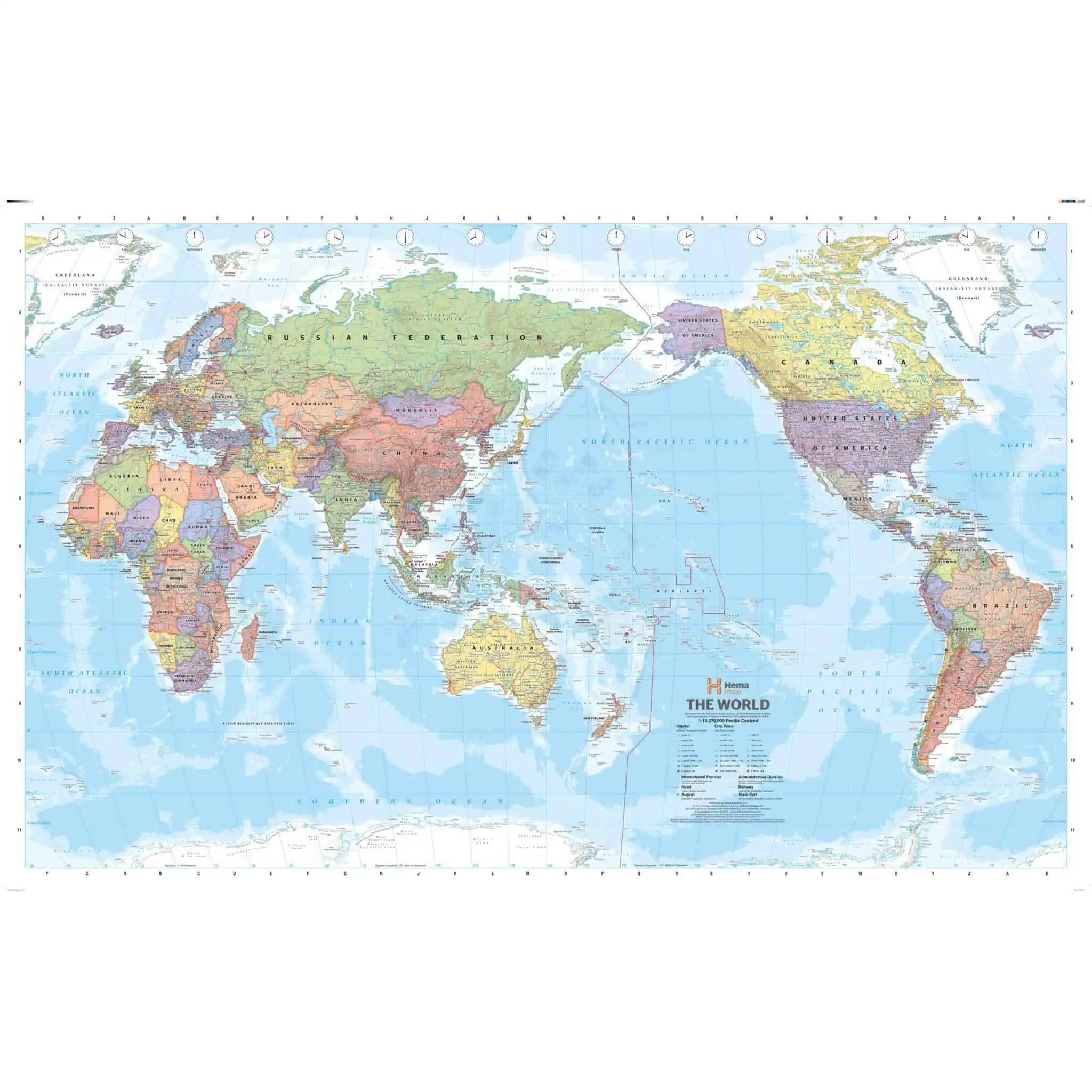 A huge world political map that features relief shading to accurately depict each country’s topography, which combined with an index makes the World Mega Map the perfect educational tool, reference point or decorative map.Â
