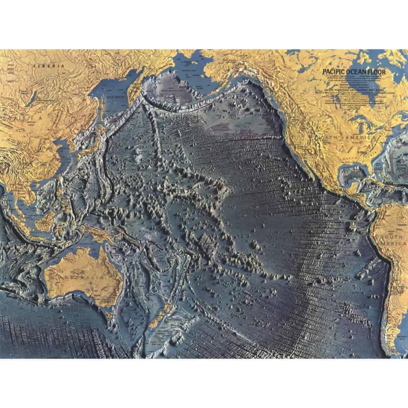 Pacific Ocean Floor Map, Published 1969 by National Geographic