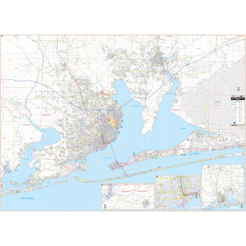 Introducing the Pensacola and Milton, FL Wall Map, meticulously detailed to provide complete street information. This comprehensive map covers the entire Metro Pensacola and Milton region, with its boundaries extending as follows: