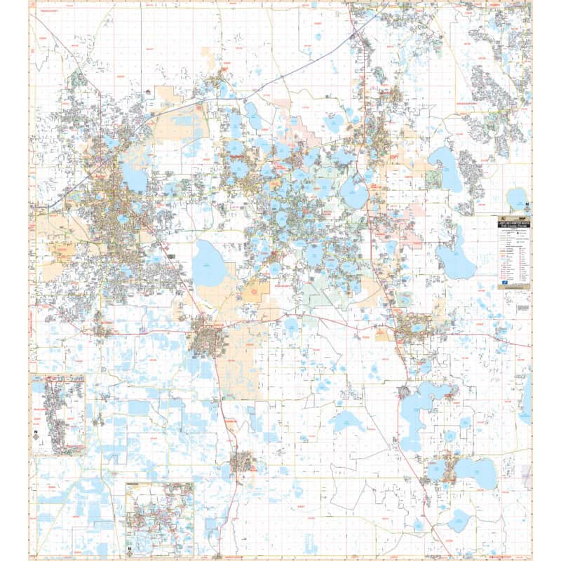 Introducing the Polk County, Lakeland, and Winter Haven, FL Wall Map, offering comprehensive street detail with a scale of 1:41,440 or 1″=3,453″. This map covers the vibrant locales of Lakeland and Winter Haven within Polk County, and its boundaries encompass: