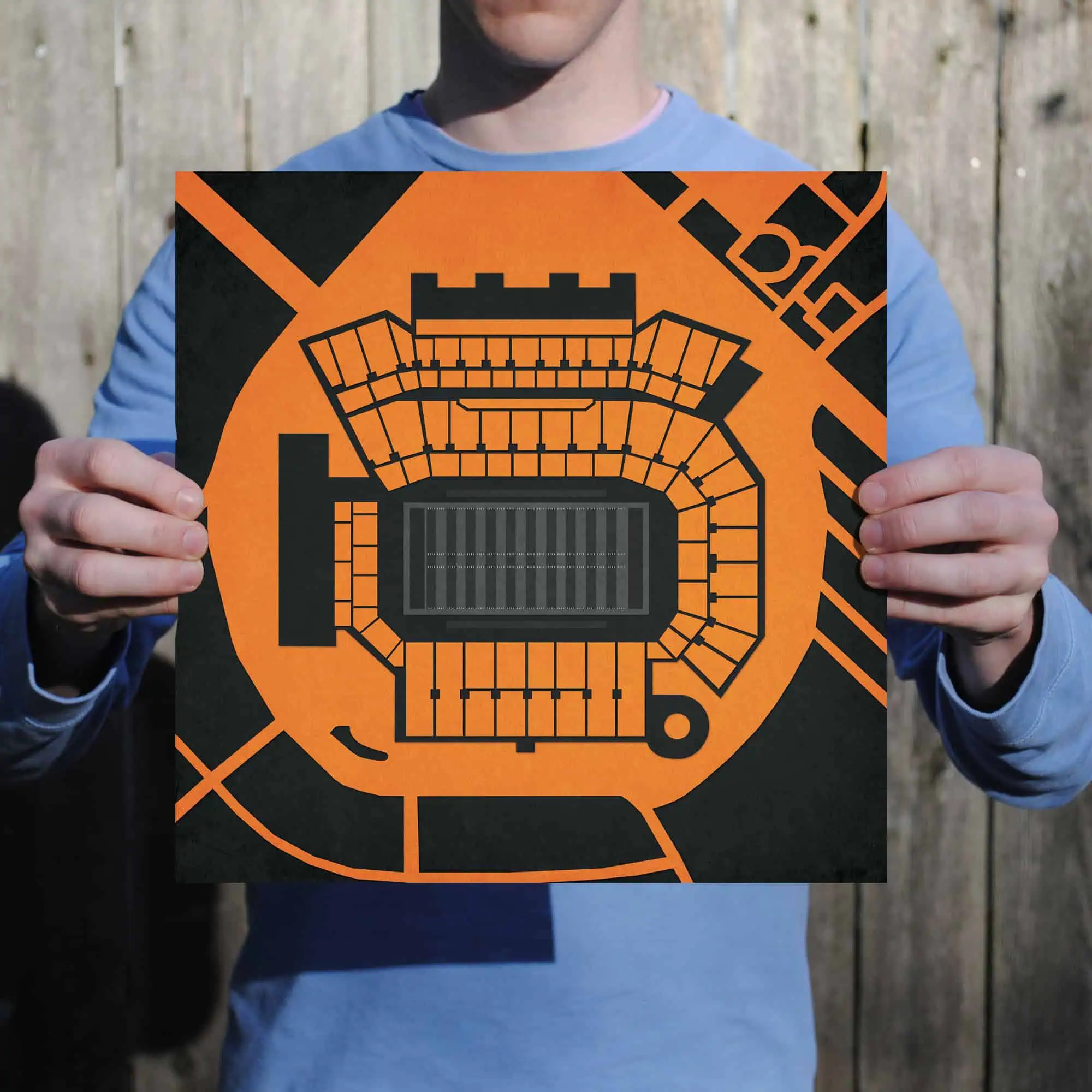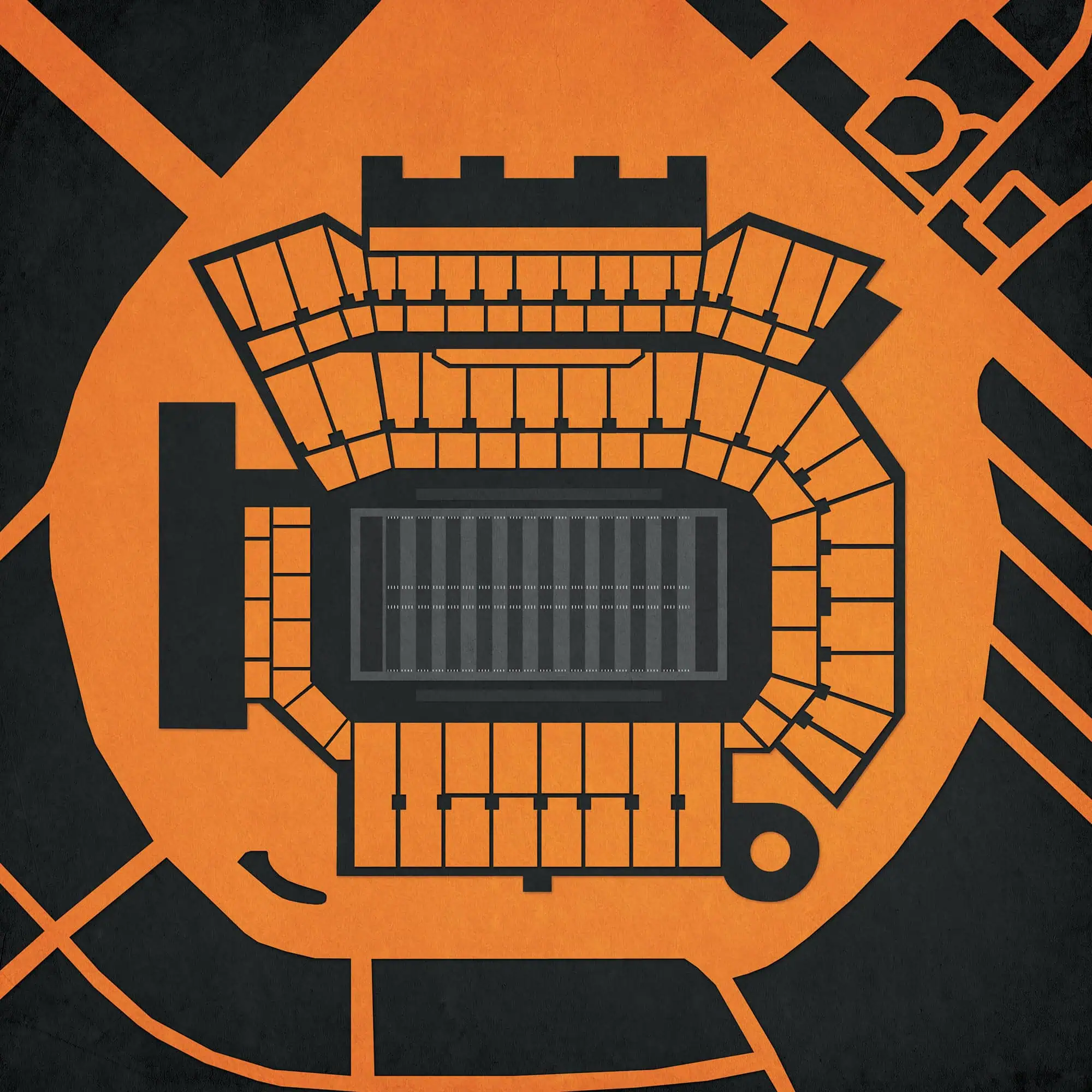 Map art print including the aerial view of Reser Stadium located at Oregon State University in Corvallis, Oregon.
