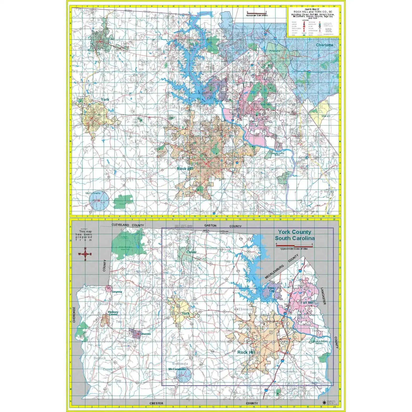 Rock Hill and York County, SC Wall Map – 48×64″