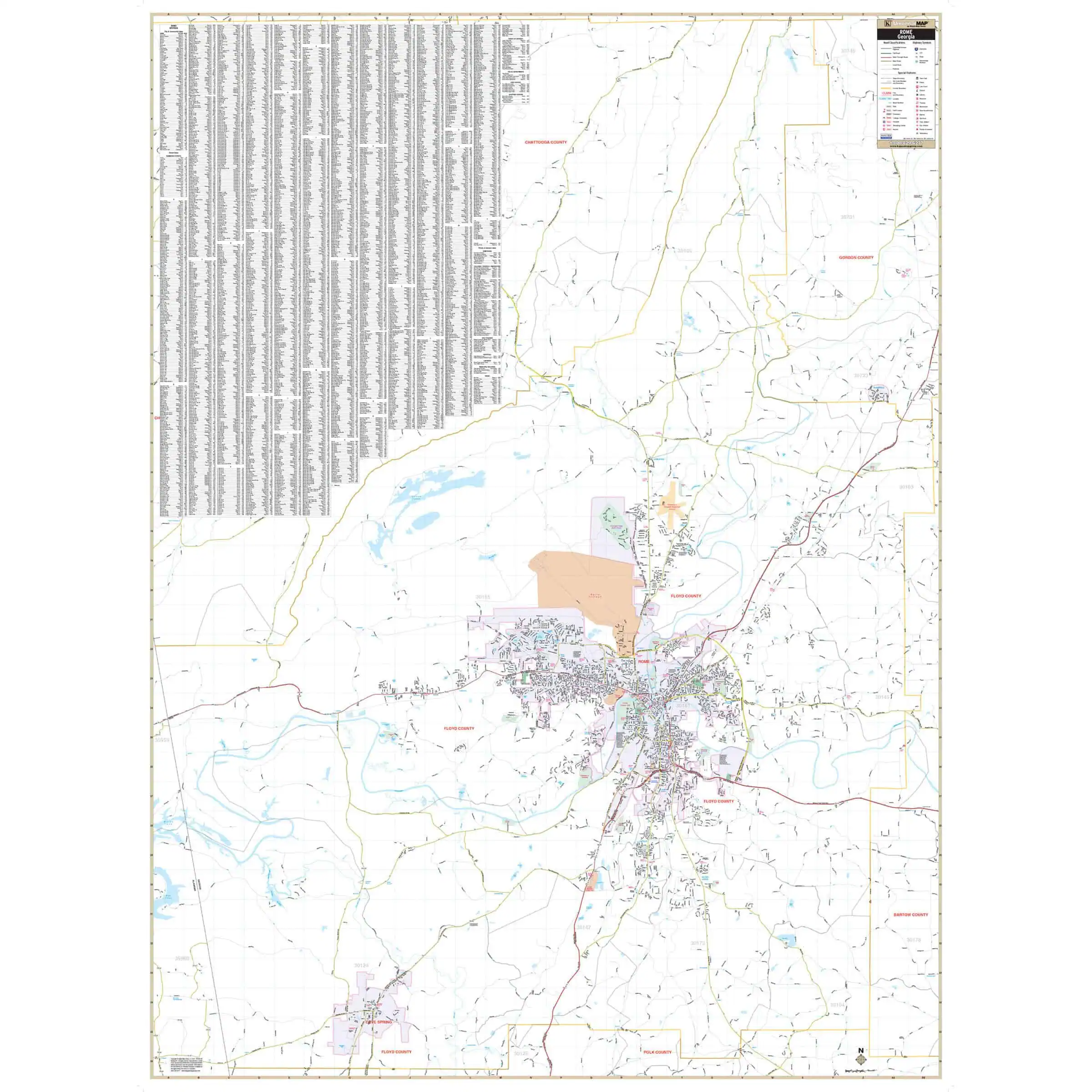 The Rome and Floyd County, GA Wall Map provides comprehensive coverage, encompassing all of Floyd County and extending into Lyerly and Trion in Chattooga County. This detailed map is designed for ease of use and clarity.