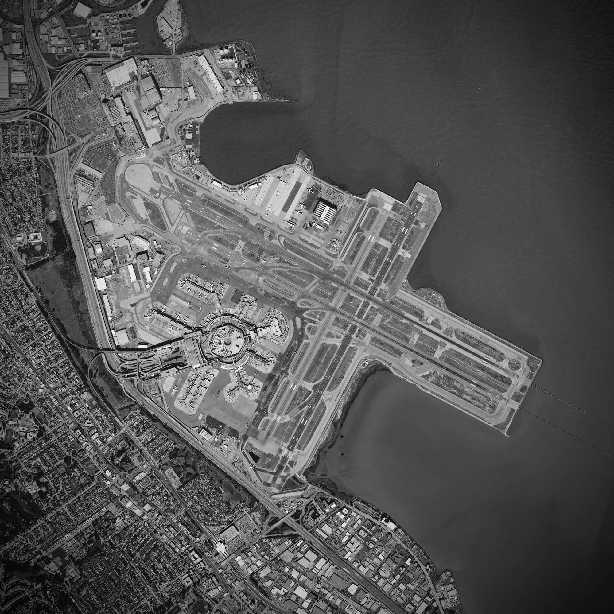 Satellite art print of San Francisco International Airport located in San Francisco, California.