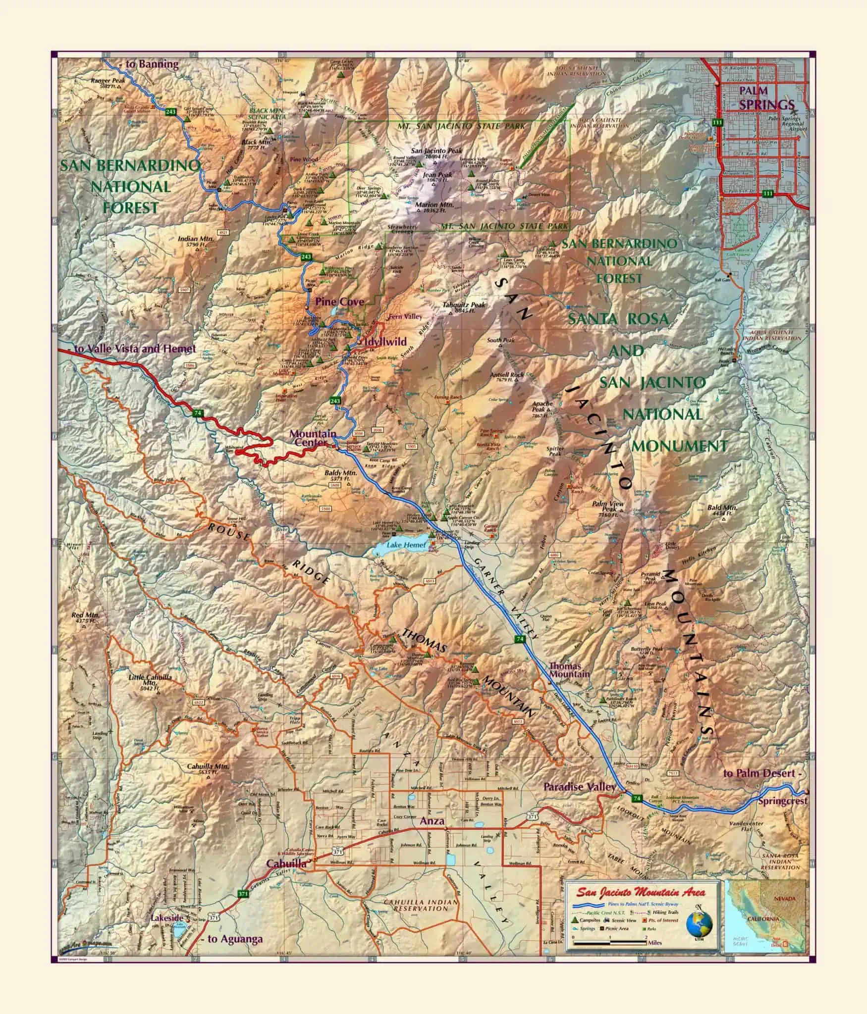 San Jacinto Mountain Area Wall Map by Compart