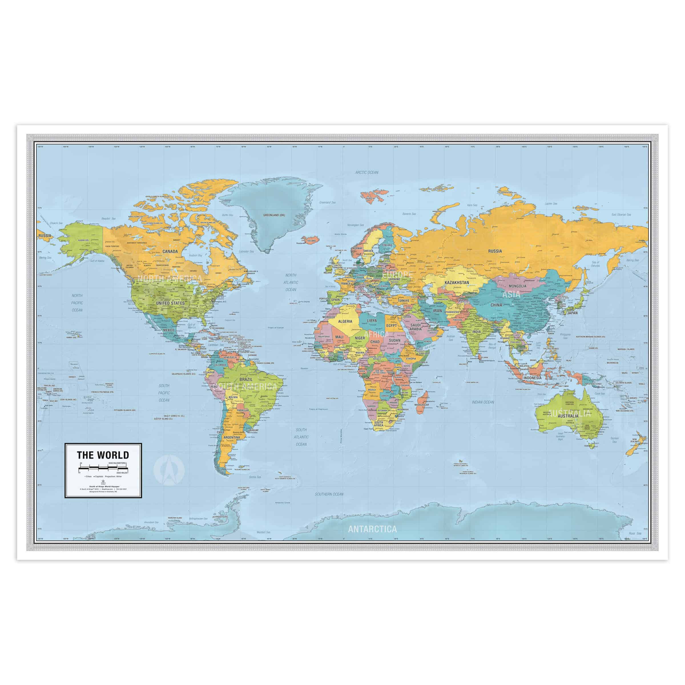 See continents, countries, US States & Canadian Provinces, cities, rivers, lakes, relief, largest mountain ranges, highest peaks, marine areas, minor islands, and more. Accuracy is our first priority and our maps are always up-to-date with the recent geographic changes and we’re constantly updating the data.