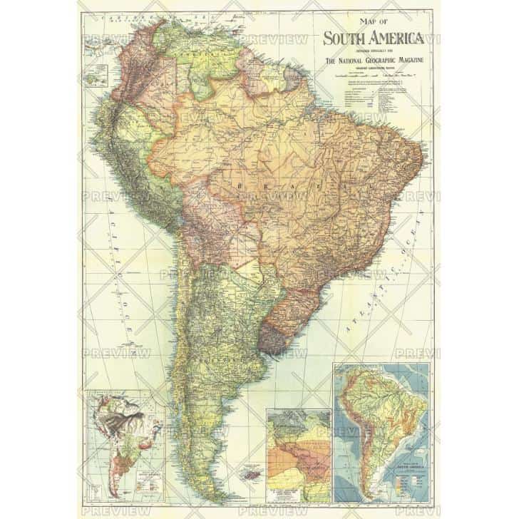 This beautifully colored map includes economic, climate, and physical information about South America. The entire October 1921 issue of National Geographic in which this map appeared was dedicated to the continent.