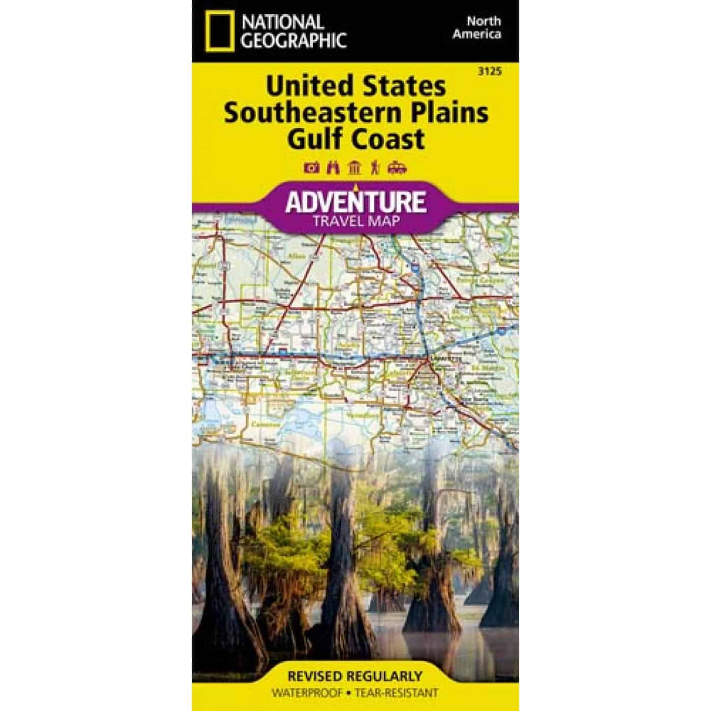 The Southeastern Plains and Gulf Coast Adventure Map will guide you through the southern Mississippi River basin from the midwestern states of Illinois and Indiana through Missouri, Kentucky, Tennessee, Arkansas to the Gulf Coast states of Louisiana, Mississippi, Alabama, and the pan handle of Florida. The names of cities in this region of the country recall the classics of jazz, blues, and country music, which were born in rivers, bayous, fields, and farms of this scenic and storied region. The map includes the cities of Indianapolis, Nashville, St. Louis, Memphis, Tallahassee, Panama City, and New Orleans. There is simply no better map for exploring the states of the Southern Plains and Gulf Coast of the United States. National Geographic’s US Adventure Maps provide the most authoritative and convenient travel maps available to plan and guide your USA Adventure.