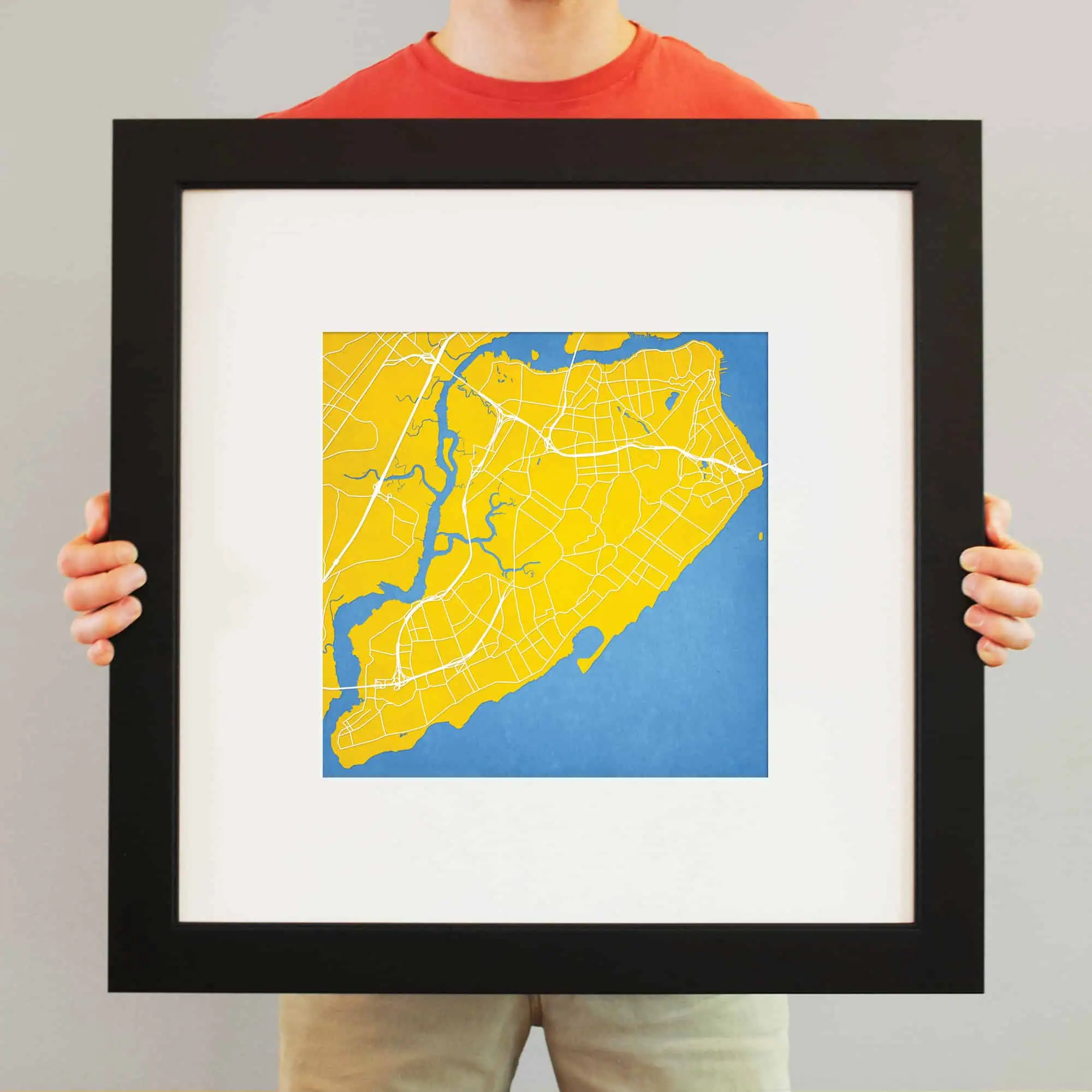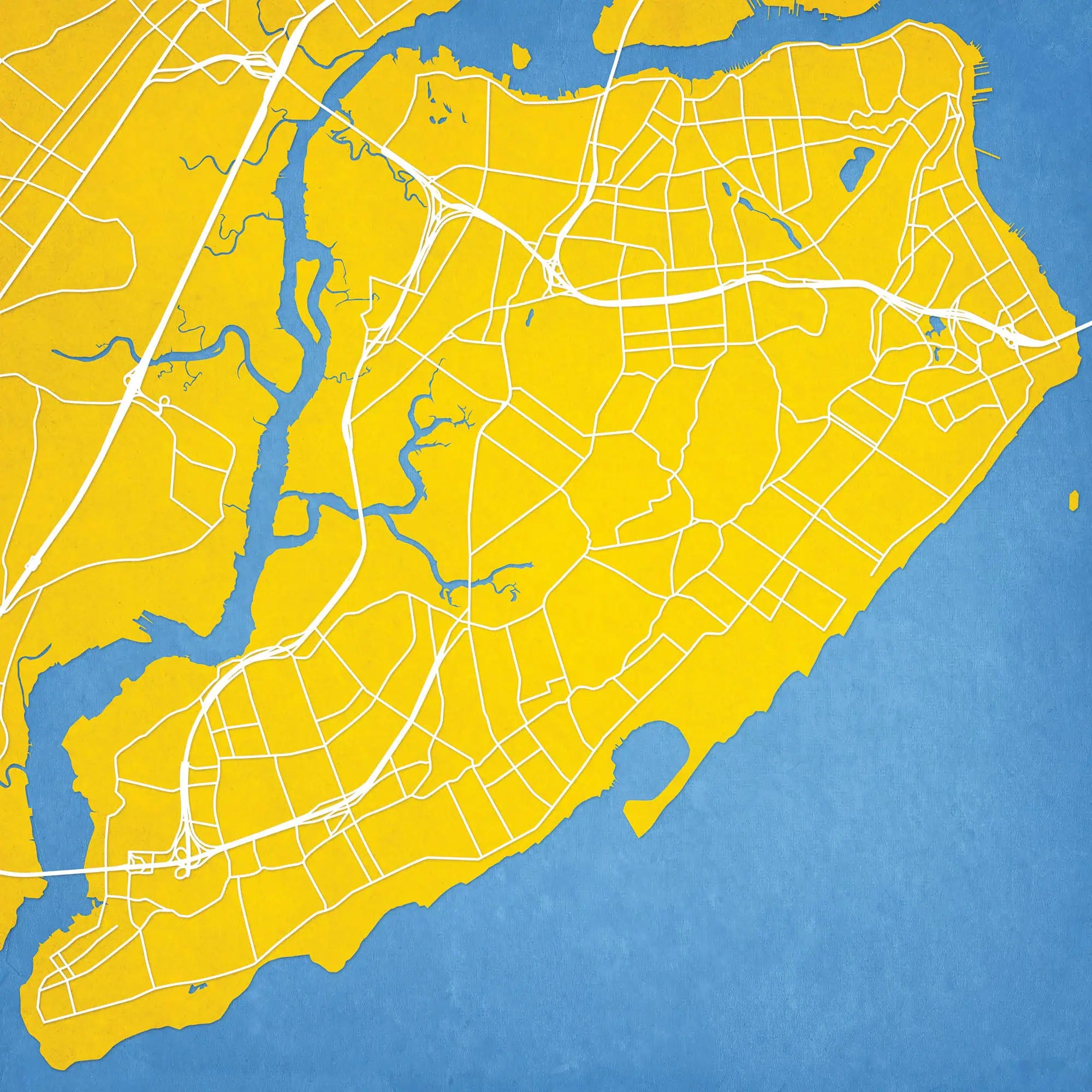 Colorful city map wall art featuring prominent street layouts and urban design, perfect for home or office decor, highlighting city navigation and geographic features.