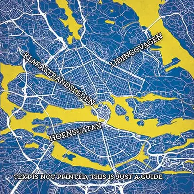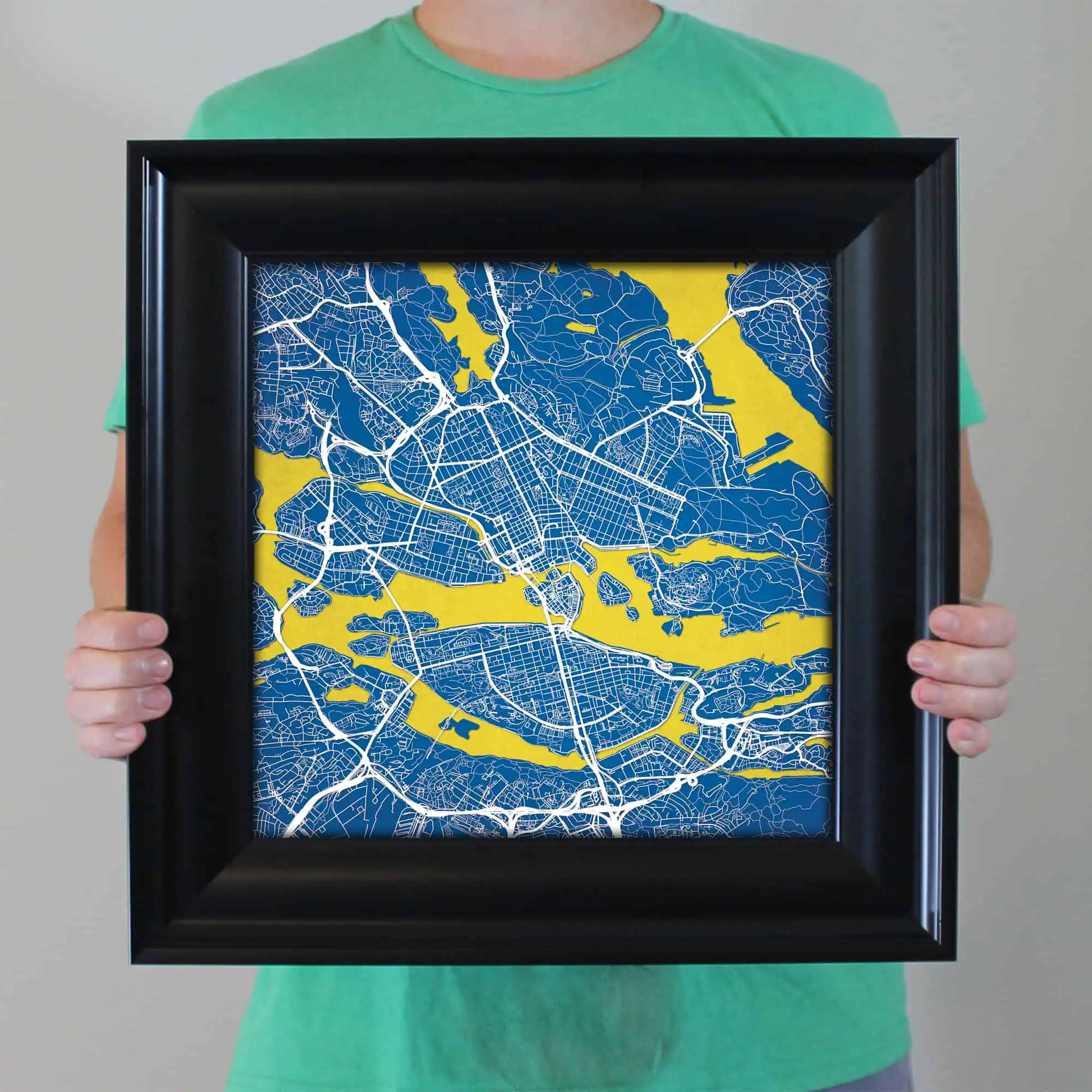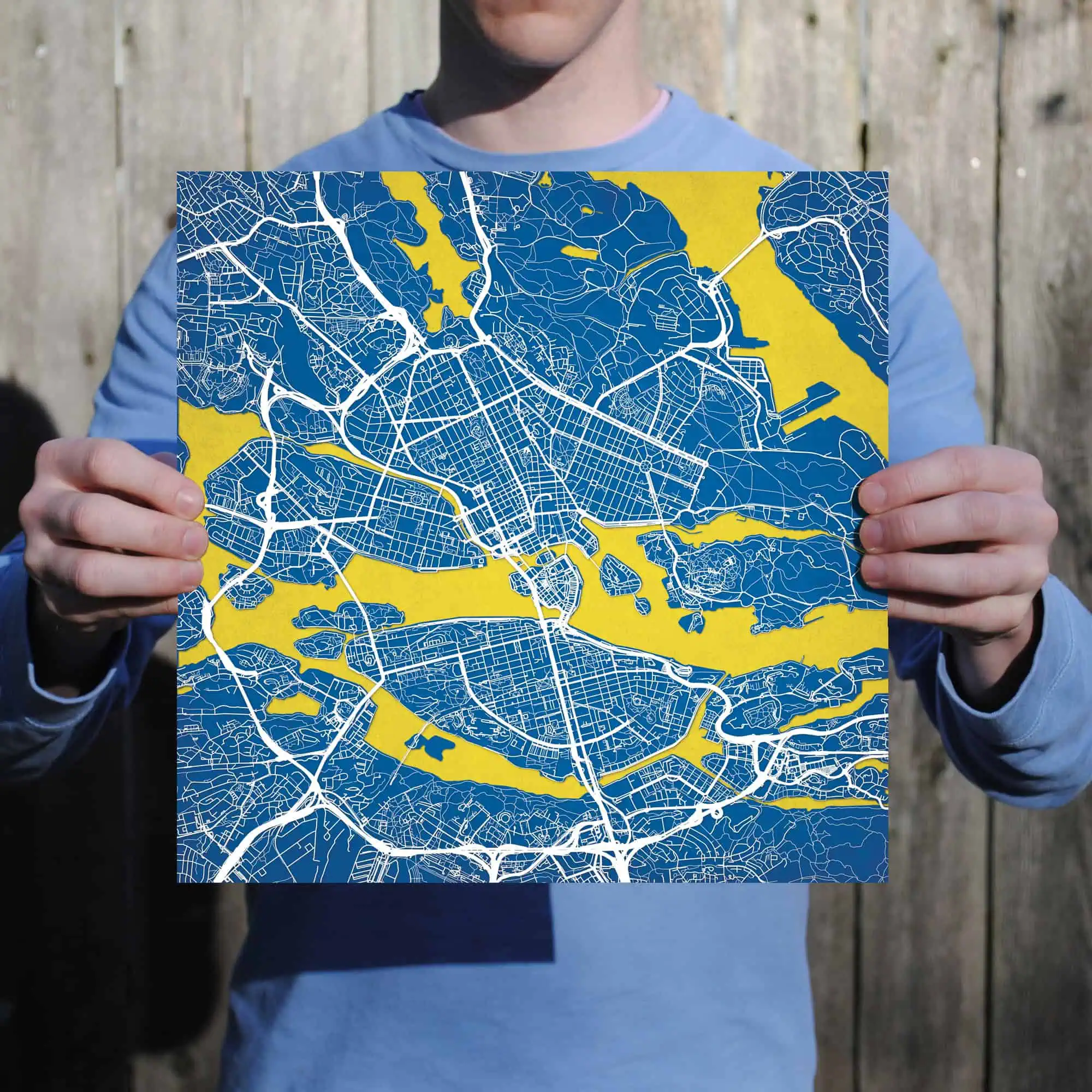 Colorful city map wall art featuring prominent street layouts and urban design, perfect for home or office decor, highlighting city navigation and geographic features.