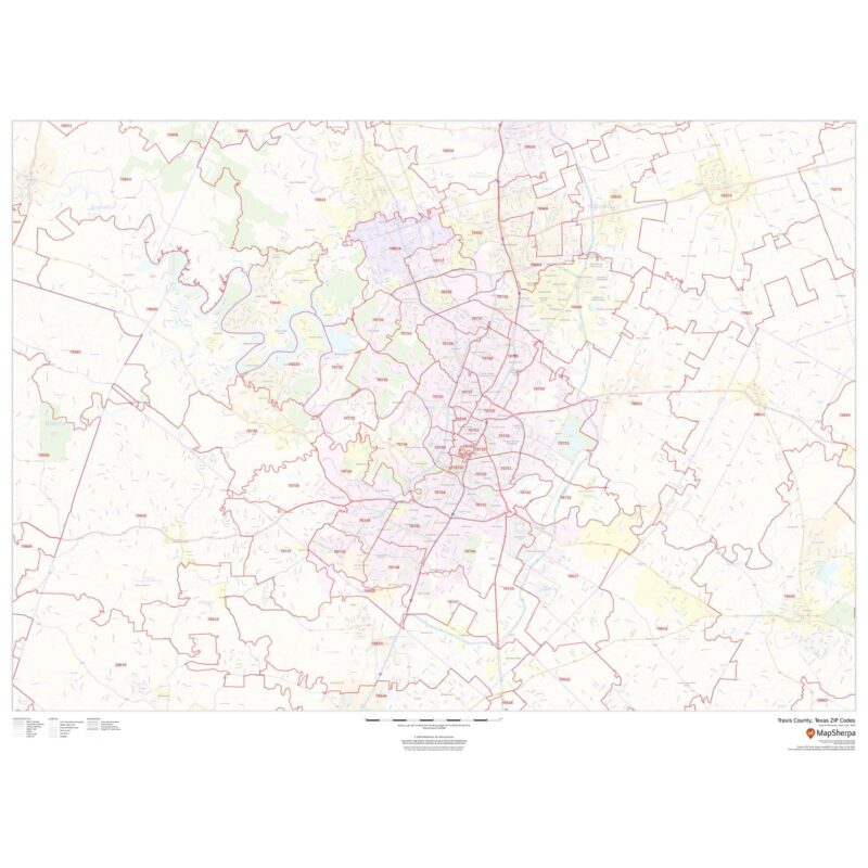 Travis County, Texas ZIP Code Wall Map by Map Sherpa