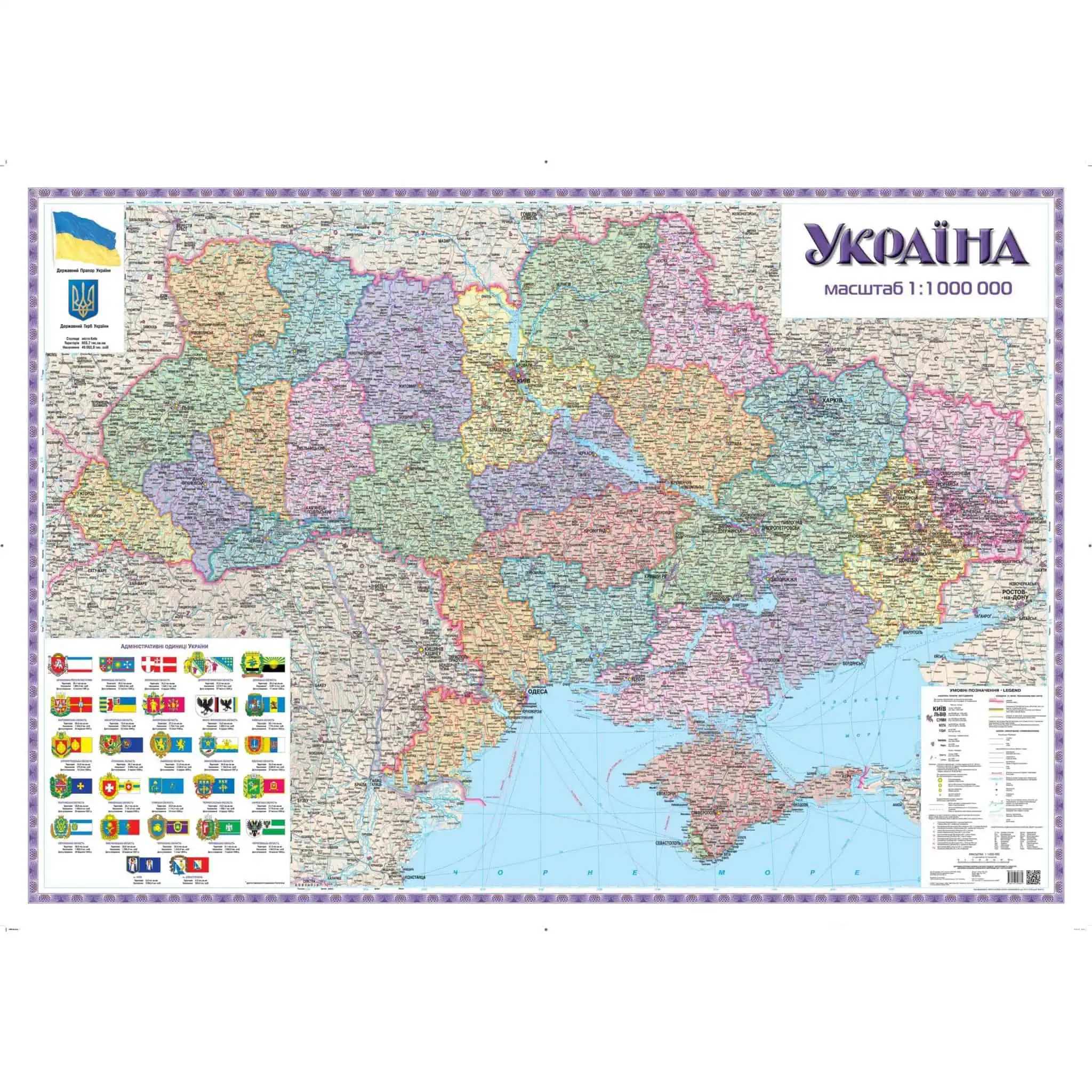 This large Ukrainian-language wall map presents the present-day political and territorial division of Ukraine: oblasts, raions, territories subordinated to cities of oblast subordinance, and modern place names.