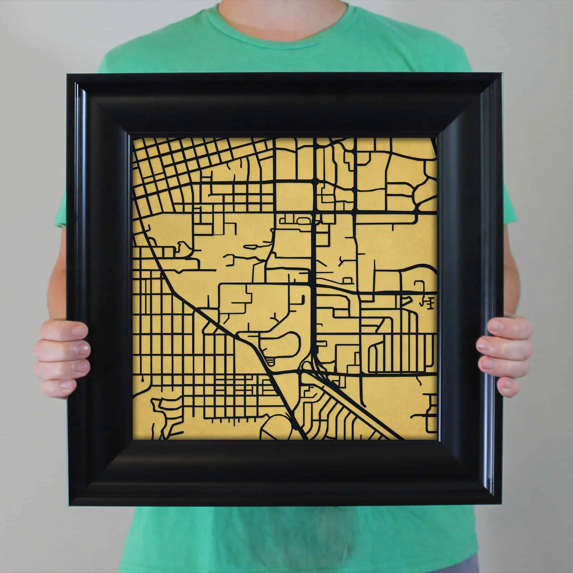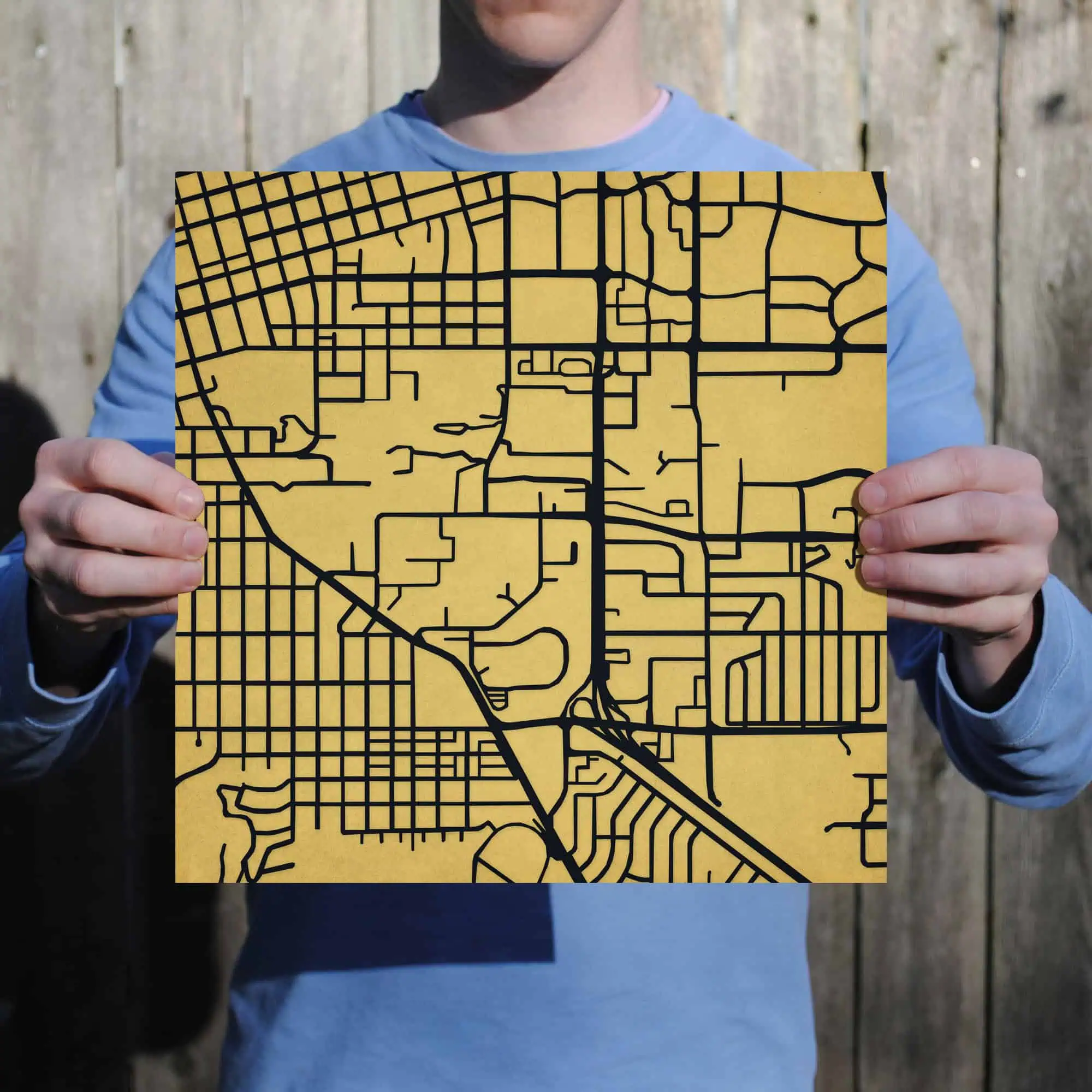 Colorful city map wall art featuring prominent street layouts and urban design, perfect for home or office decor, highlighting city navigation and geographic features.