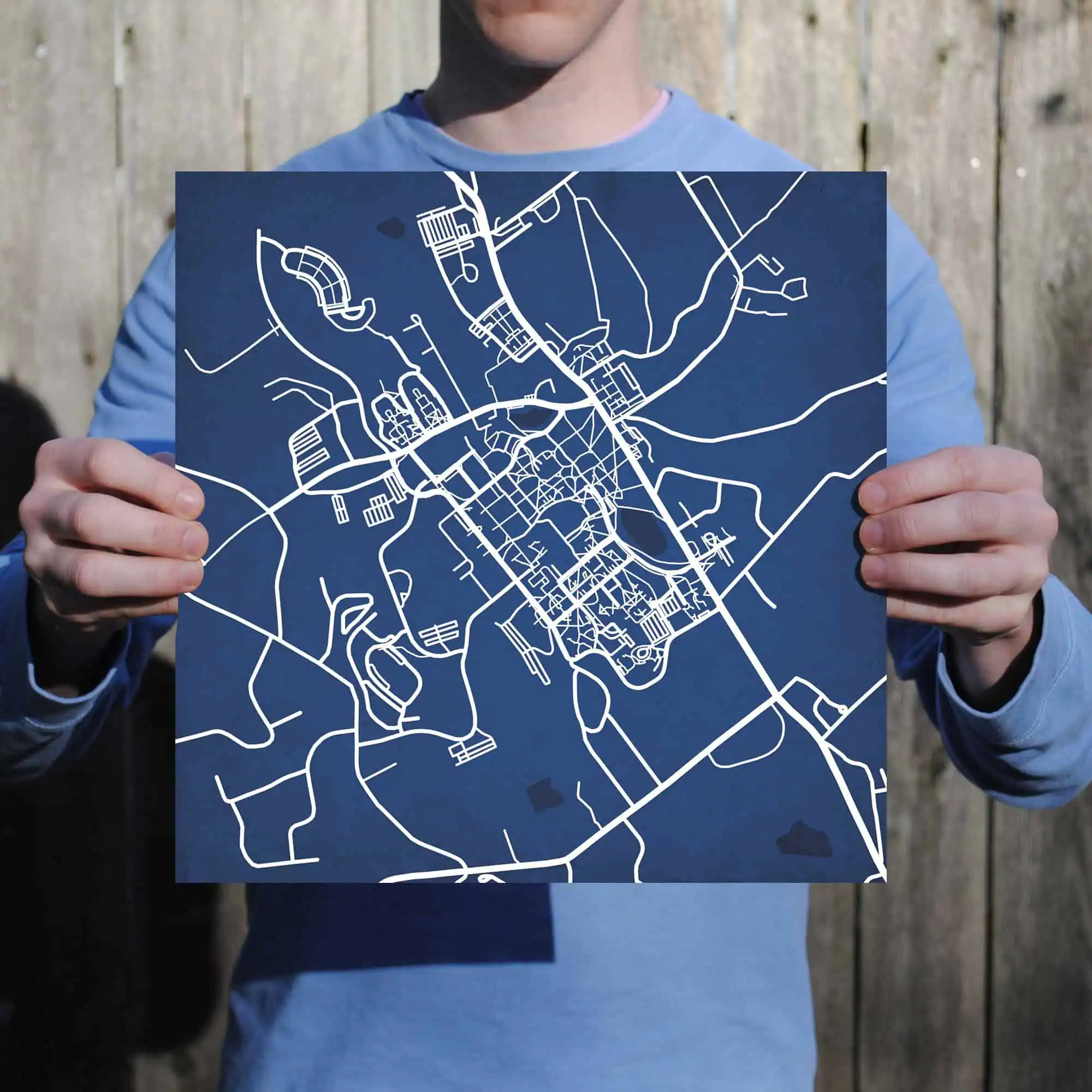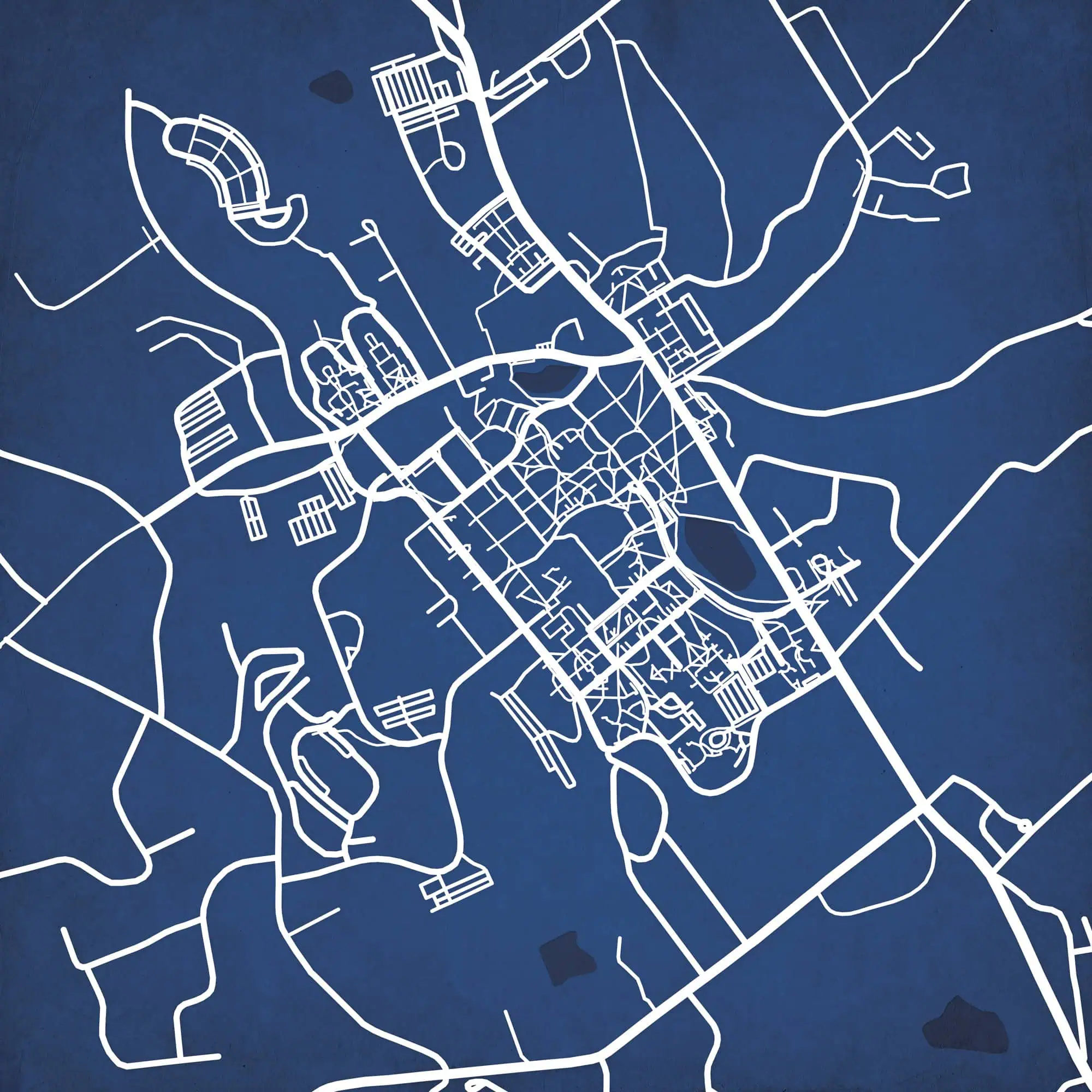Map art print including the University of Connecticut campus located in Storrs, Connecticut.