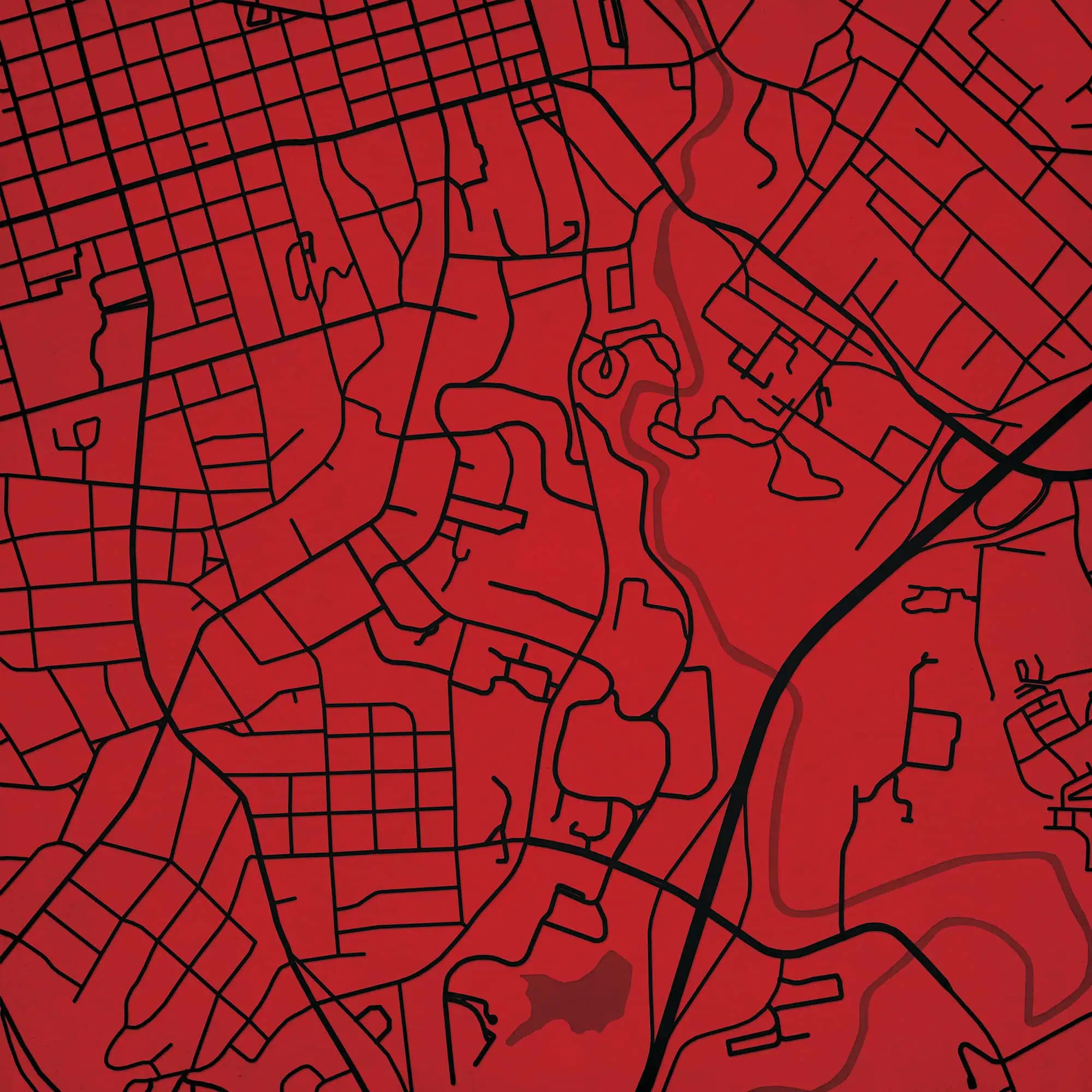 Colorful city map wall art featuring prominent street layouts and urban design, perfect for home or office decor, highlighting city navigation and geographic features.