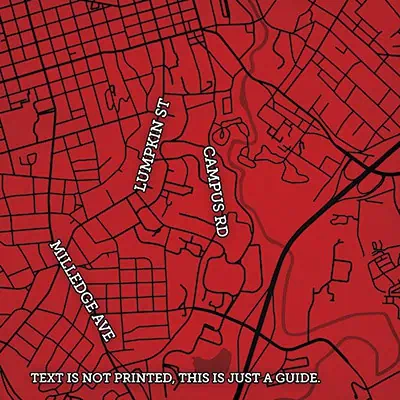 Map art print including the University of Georgia campus located in Athens, Georgia.