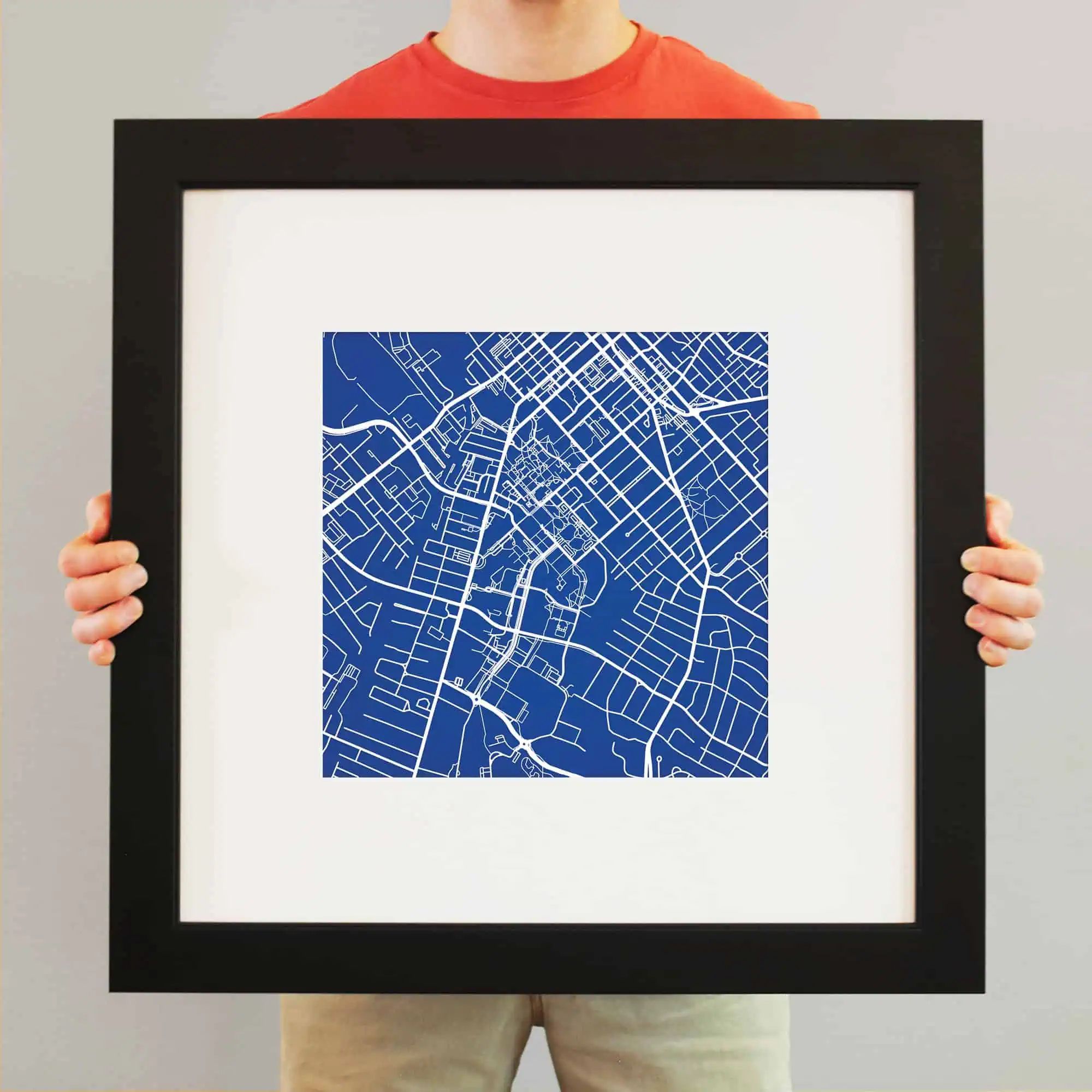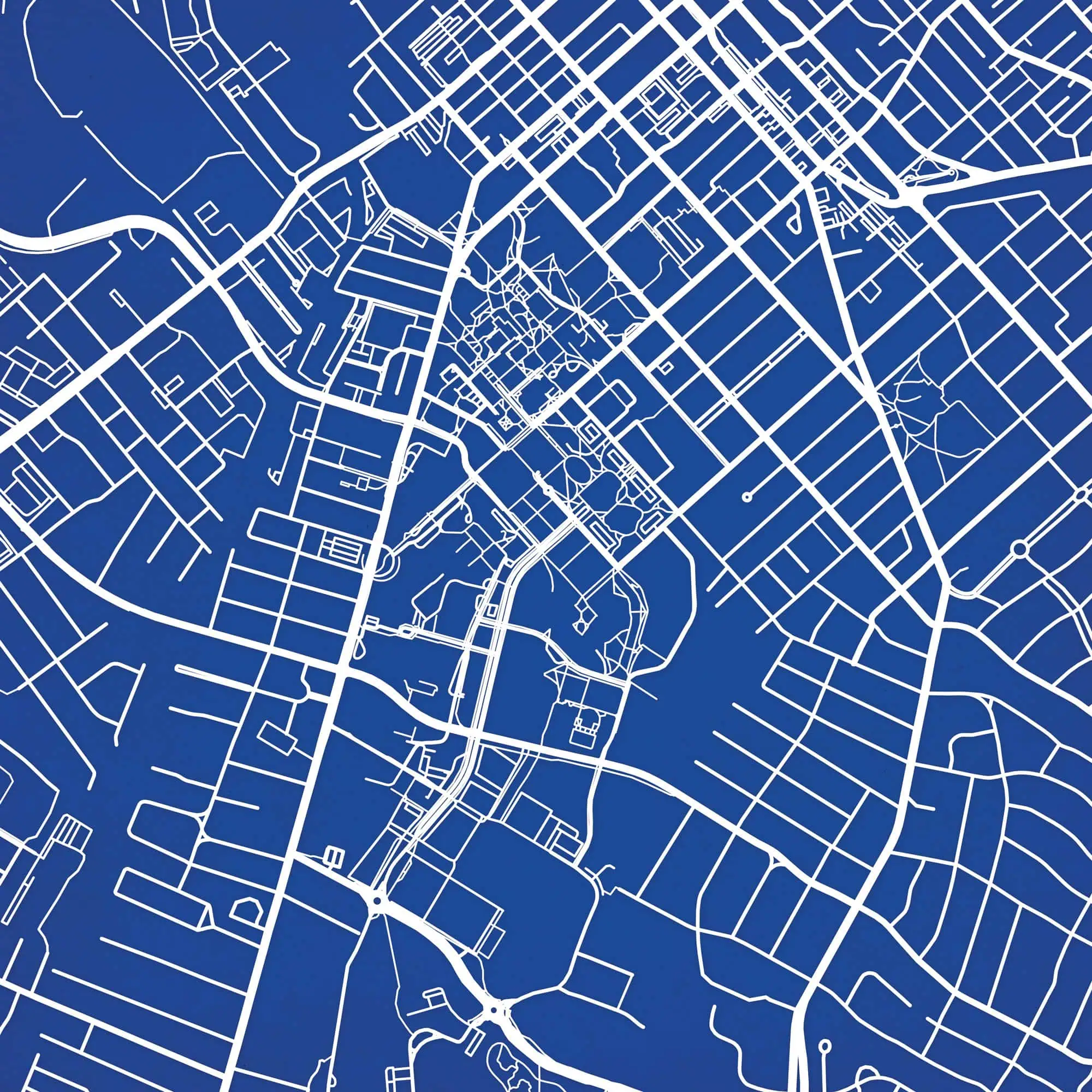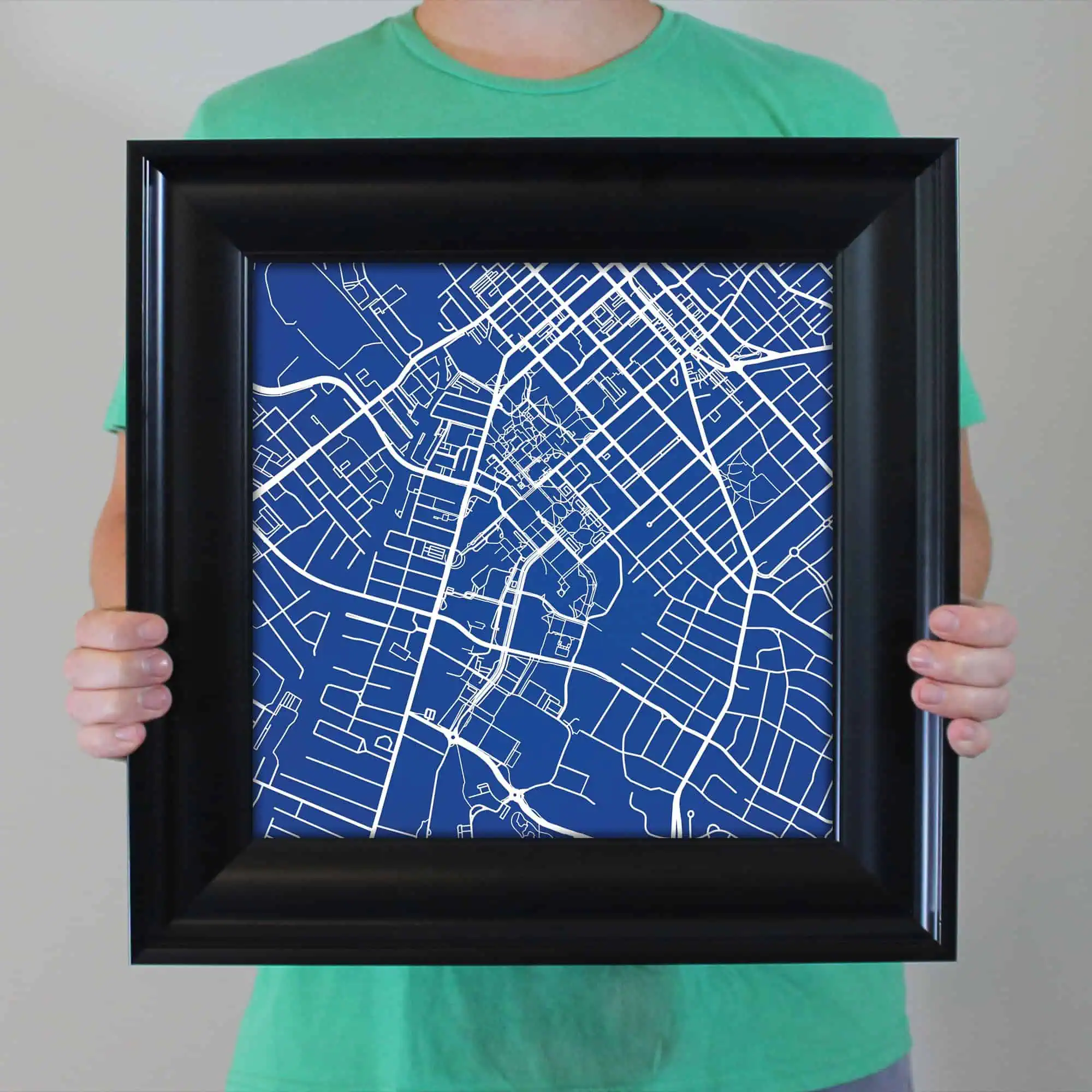 Map art print including the University of Kentucky campus located in Lexington, Kentucky.