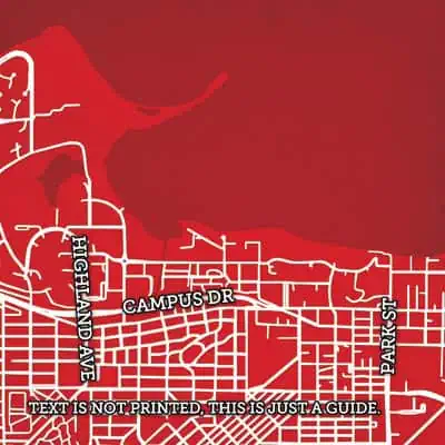 Map art print including the University of Wisconsin campus located in Madison, Wisconsin.