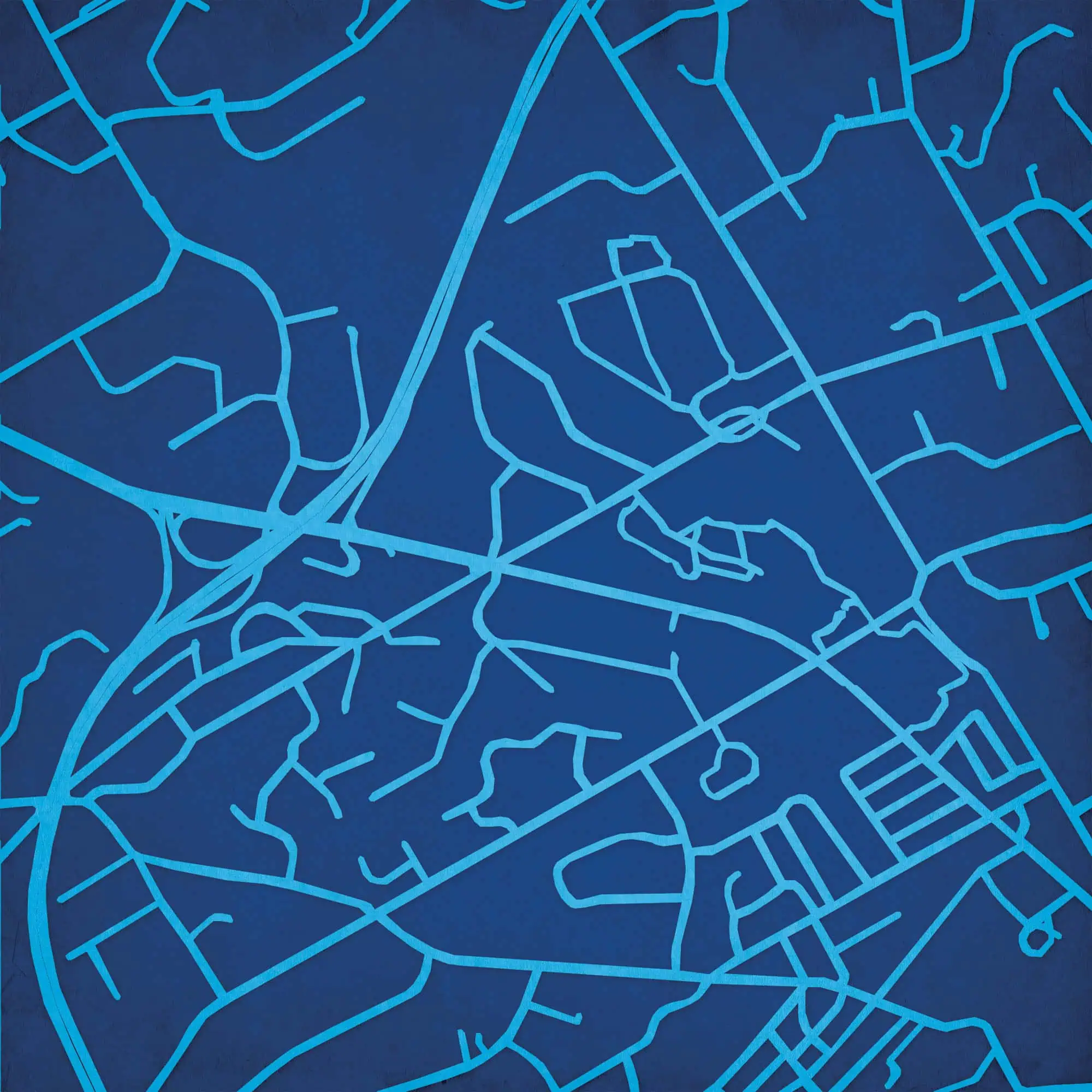 Colorful city map wall art featuring prominent street layouts and urban design, perfect for home or office decor, highlighting city navigation and geographic features.