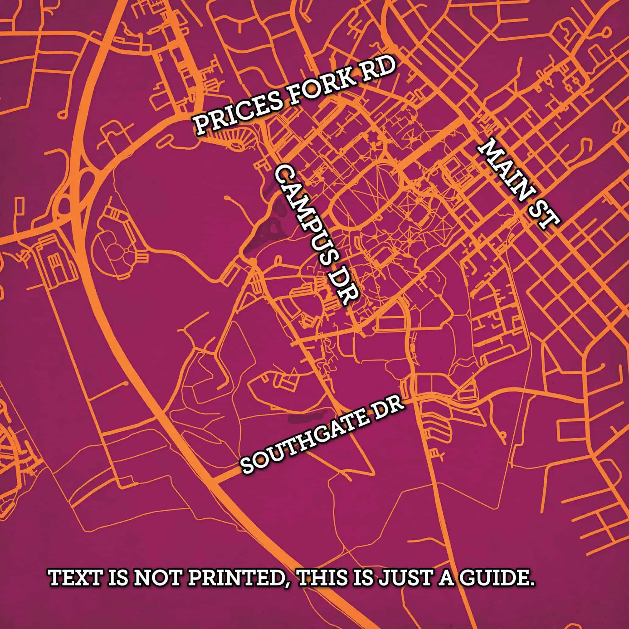 Virginia Polytechnic Institute and State University Campus Map Art by City Prints