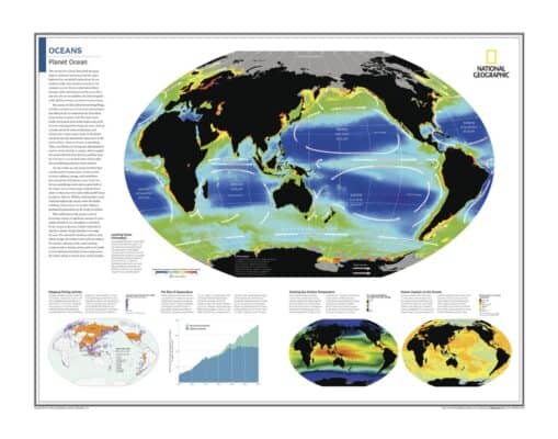 Ocean Maps illustrate undersea geography, including ocean currents, seafloor topography, tectonic plates, and marine boundaries. These maps are ideal for marine scientists, educators, and enthusiasts intrigued by Earth’s vast aquatic systems. Want to explore other types of wall maps? Click here to browse our full collection.